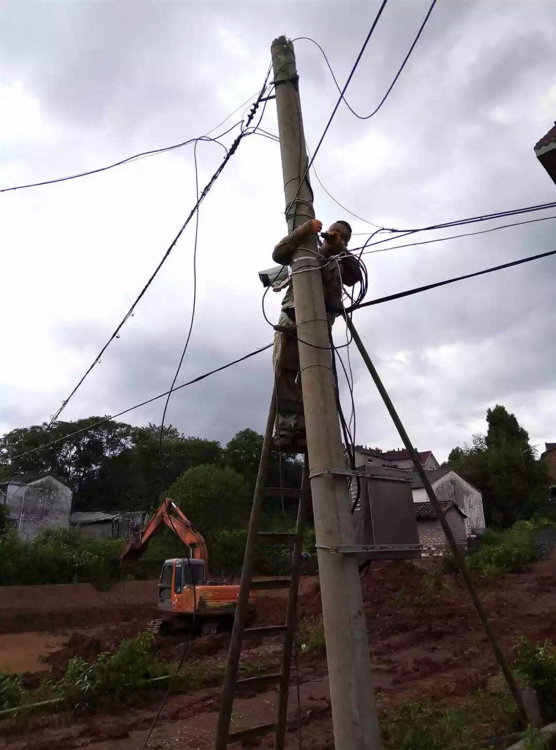 “方书记,你快来看看,这电线杆被撞断了,村里十几户农户断网,好几户农户断电了”。正在巡查危房水库的水亭乡河伯村书记方雨丰立即赶到现场,考虑到强弱电部门上门维修需要一定的时间,于是,持有电工证和高空作业证的方雨丰二话不说,决定亲自维修。在方书记的指挥调度下,一拨人清运断裂的电线杆,一拨人将闲置的电线杆拉到现场,清场、立杆、连接光缆电线,方书记亲力亲为,每个步骤做得有条不紊,不到三个小时,一切恢复如常,村民的用电用网障碍被扫除。