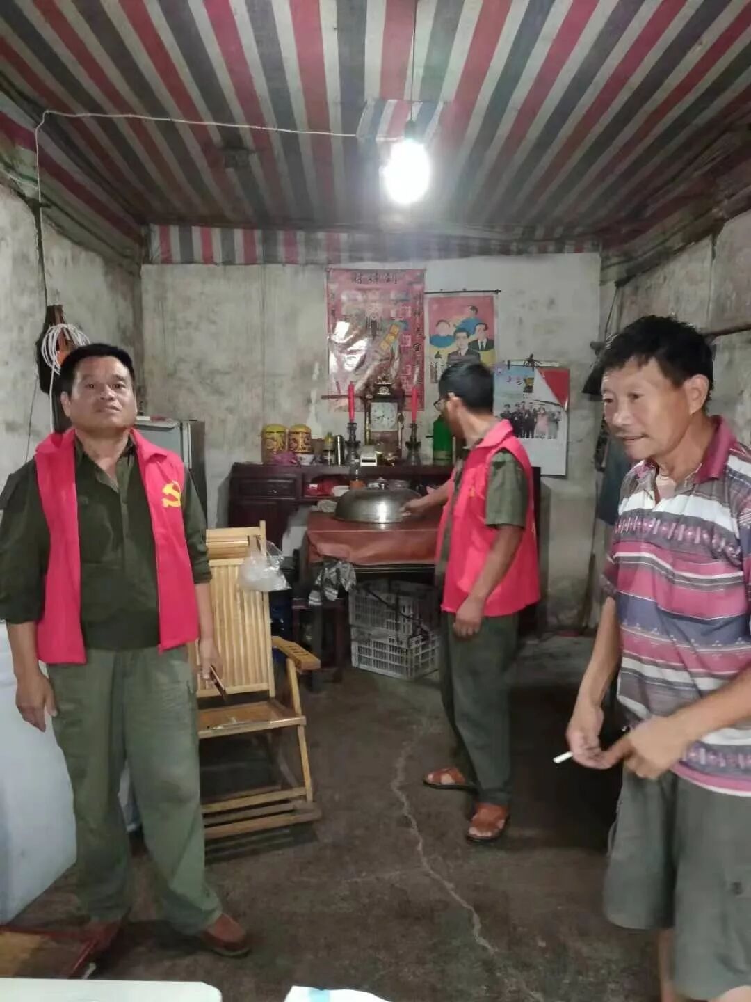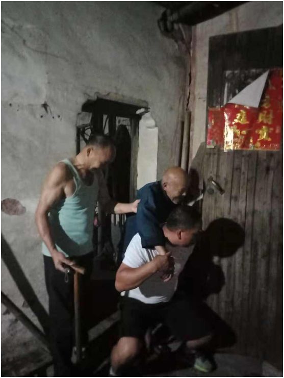 第二小分队也不甘示弱,前往辖区内郑云生、郑云法俩兄弟村住处劝导转移。两兄弟由于家贫,身体又差,常年吃药,房子破旧也没修葺,这次台风来了,他们俩也是重点需要转移的人员,网格员们劝说他们暂住到村里的避灾点时,他们一直在说:“不用不用,我们没事的。”“到避灾点住一晚,明天咱们再回来,房子没事最好,不怕一万就怕万一,咱们收拾点东西就当出去玩一天呗。”村里的兼职网格员兼调解主任汤裕祥劝道。经过一番耐心的劝说,俩兄弟终于松口,前往村里的避灾点了。