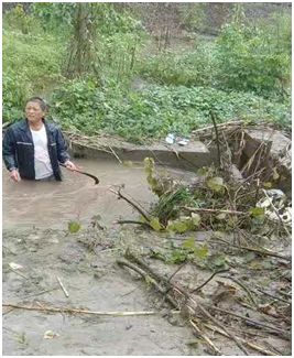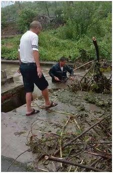 雨越下越大、风越刮越猛、水越涨越高,河道梳理迫在眉睫。此时的网格员倪如通顾不得多想,立马把伞丢开,带头开始清理起树枝来。其他网格员、村民见状也纷纷行动起来,有的打电话联系清运车辆、有的拍照上报镇里报备,有的还不顾天气拿着镰刀直接跳入水中。水流很急,风雨很大,但在大家的齐心协力下,树枝很快被清理干净了,下水口畅通了,河道水位也下来了,大家都松了口气,而我们的网格员呢?又继续去别处巡查了。