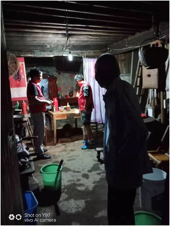 水亭乡西方坞村村民雷土桂,是一位孤寡老人,家里条件极差,住在一间危房里。8月9日晚上10点半,西方坞村网格长雷阿富带队到雷土桂家中,跟他讲解台风的危险性:连续的大雨会对房子造成冲击,存在很大的安全隐患。经过大家的劝解,老人在晚上11点被成功转移至村办公楼安置。