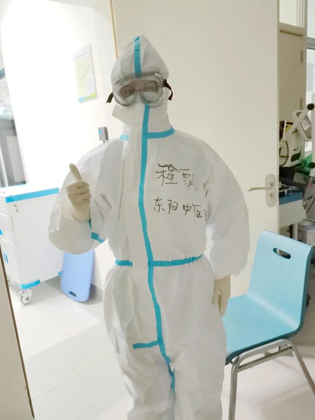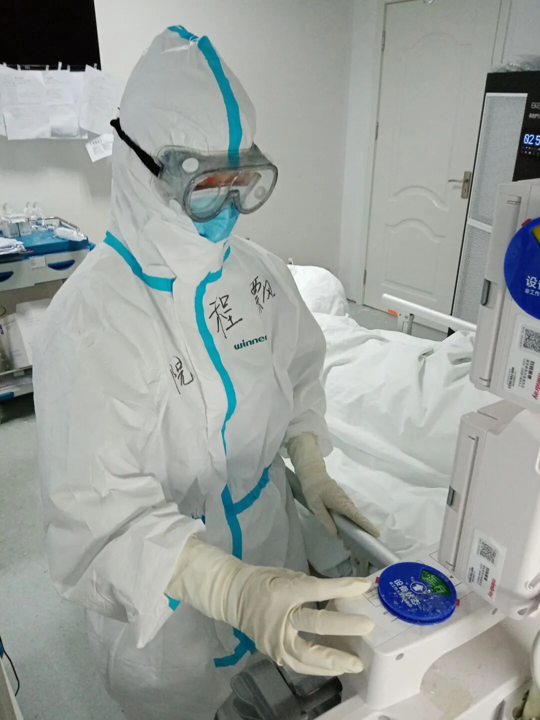 那天,当我第一次正式穿上洗手衣、防护服,戴防护目镜、两层口罩,在环境封闭的重症监护室内上班时,我的第一反应是透不过气来,护目镜上全是雾气,穿得多加上紧张,洗手衣里全是汗,感觉到身体忽冷忽热。