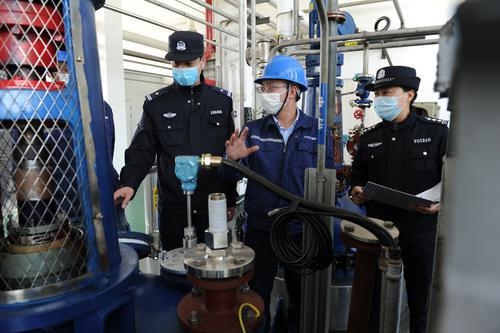4月7日,东阳市公安局横店分局民警在一家易制毒化学品使用企业检查。随着疫情的好转,横店辖区的40余家易制毒化学品使用企业均已复工复产。连日来,民警通过实地查看、查阅台账资料、现场询问等方式,对40余家易制毒化学品使用企业逐一上门进行检查,对在检查中发现的问题及时提出整改意见。同时,要求企业负责人要严格遵守《易制毒化学品管理条例》,加强在购买、运输、存储、使用等各个环节的管理,坚决杜绝易制毒化学品流入非法渠道。