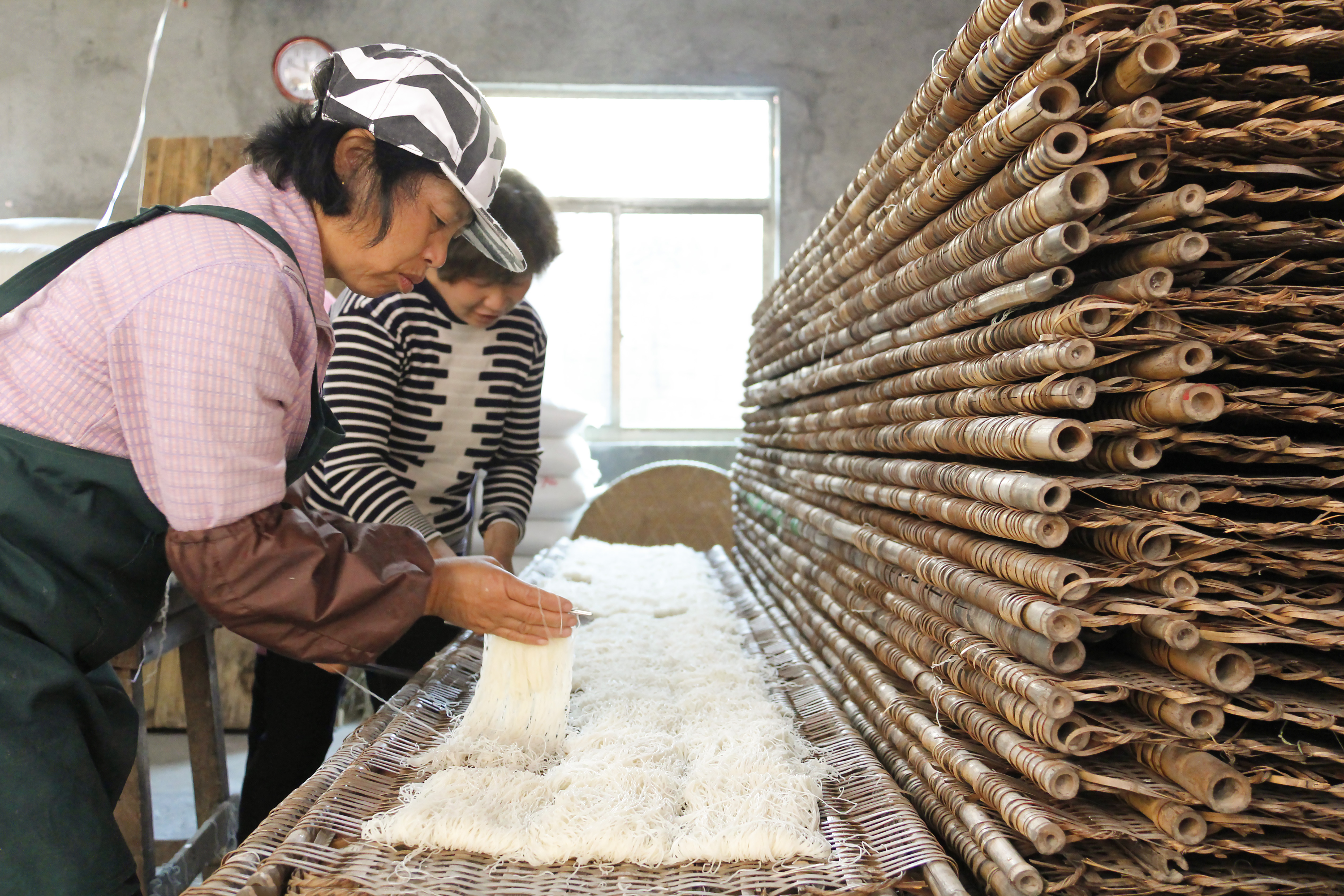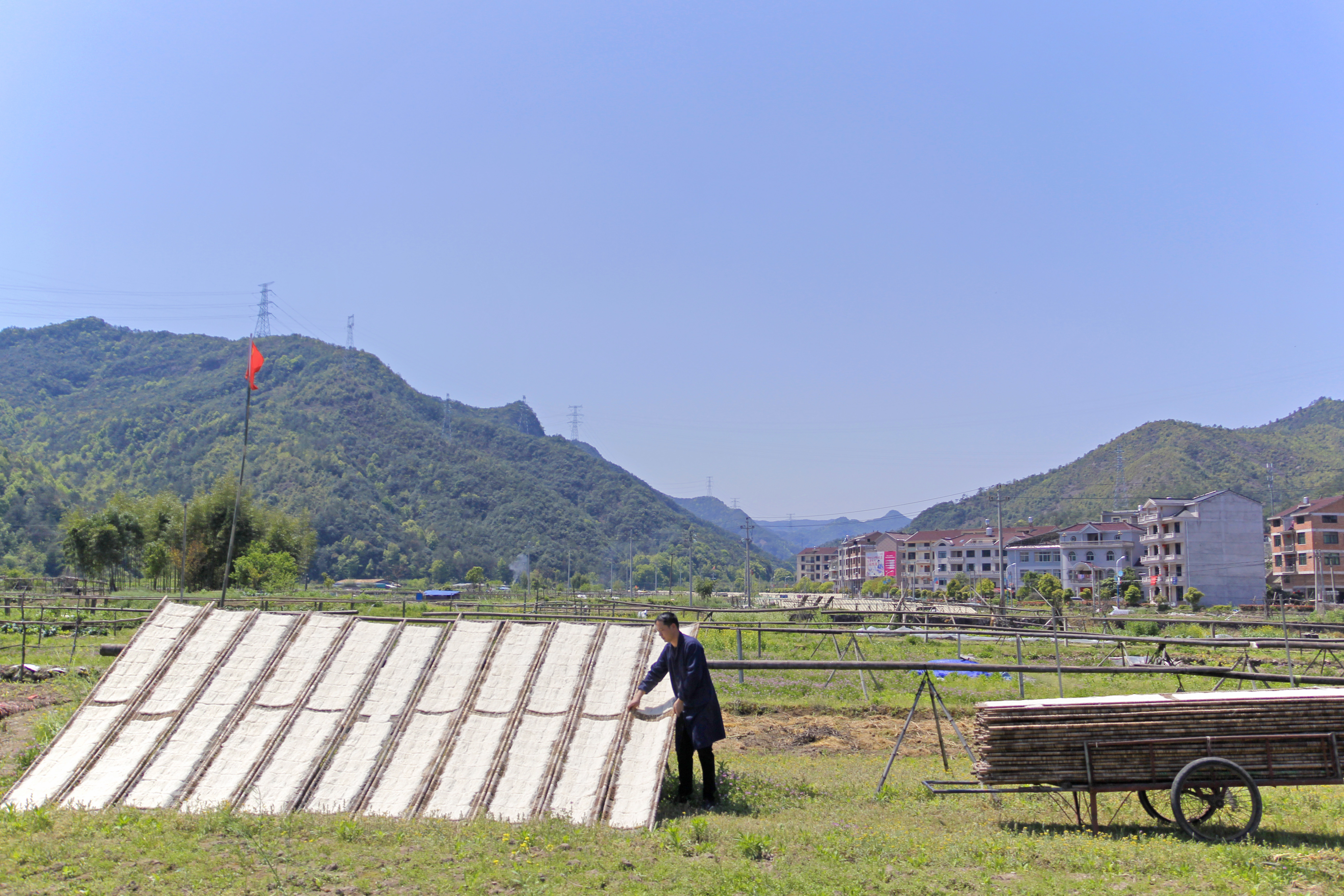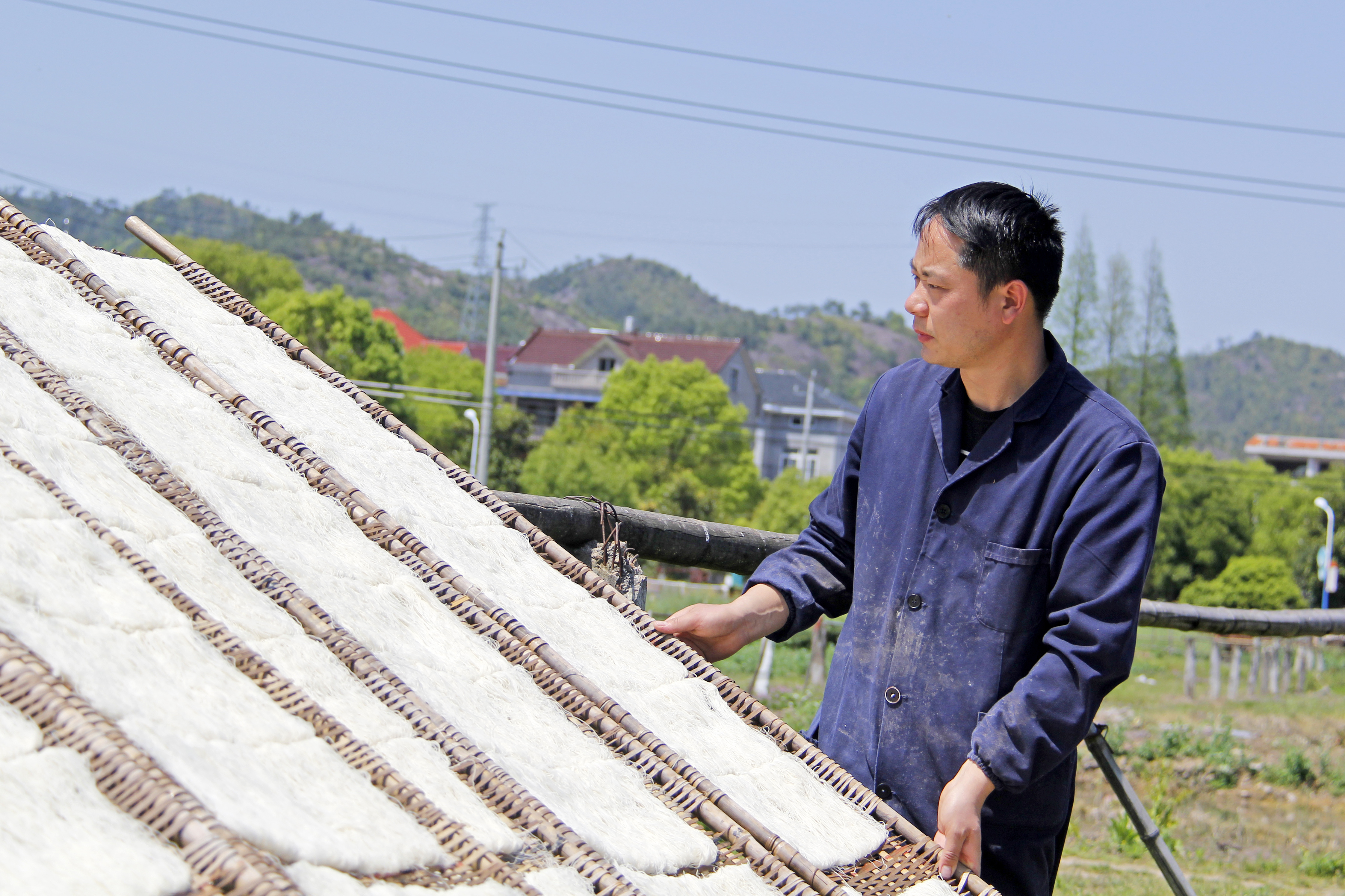 4月8日,在东阳市南马镇西山脚村,村民们趁着天气晴朗,忙着加工索粉。据了解,受疫情和天气的影响,村里索粉加工已经停工了两个多月,今天是复工的第一天。不少老顾客已提前下订单,村民们有条不紊地忙碌着,整个村庄充满了生气与活力。