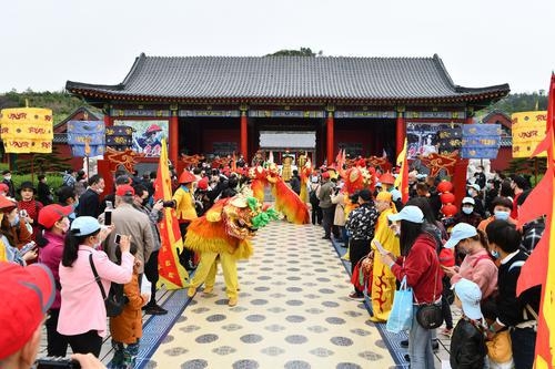 4月23日,,由东阳市横店影视城主办的穿越时空行•万园之园游园会暨金华人游横店首发活动在东阳市横店圆明新园(春苑)举行,来自金华、义乌、浦江、磐安等地众多游客在满园春色中尽情游玩,享受春光。