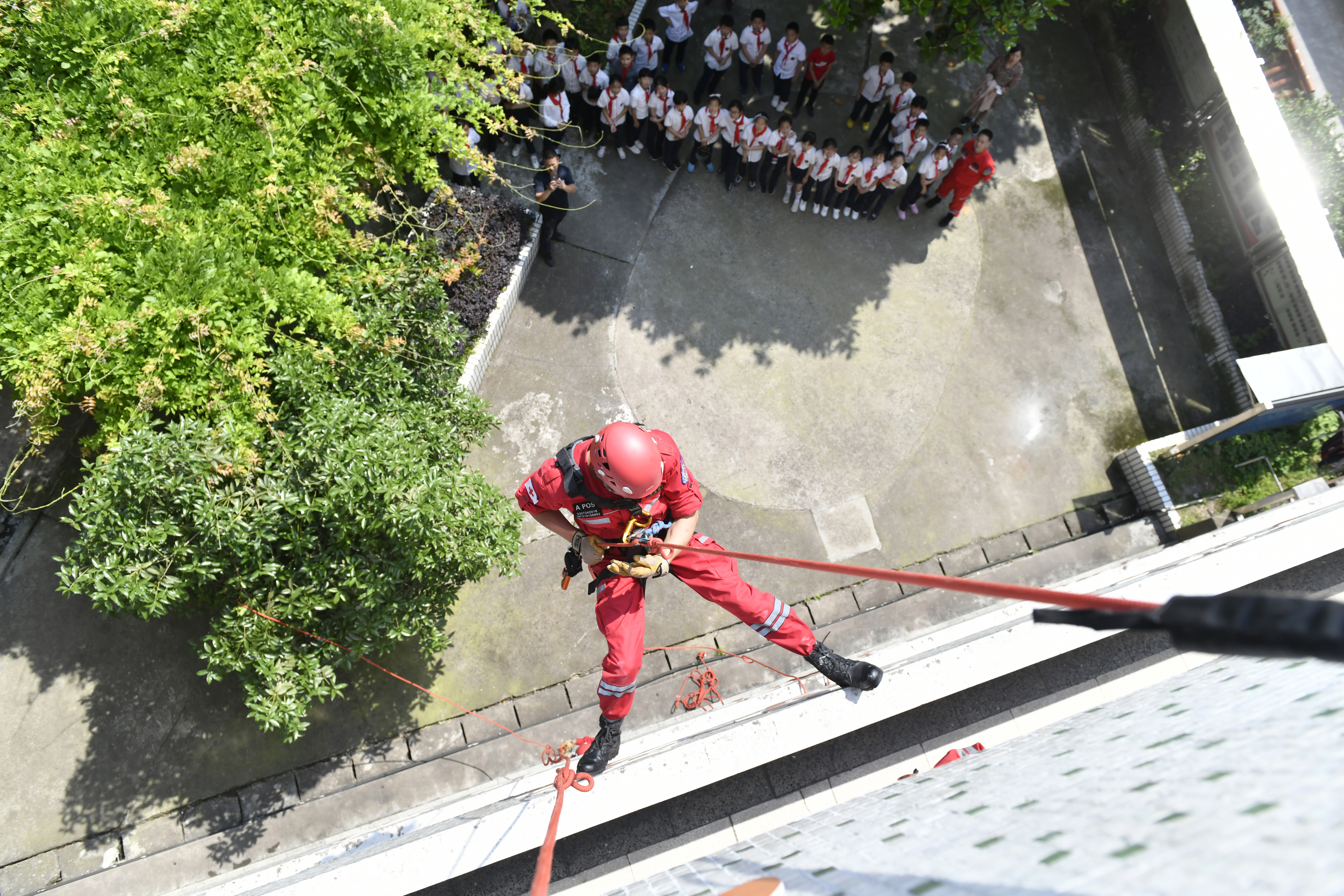 常态化坚持夯实了安全教育的基础,除此之外,东阳市实验小学以主题日为契机,开展丰富多彩的主题活动。5月12日是全国防灾减灾日,去年,该校组织部分学生到东阳市农商银行红十字应急救援队,学习、体验如何使用救援设备。