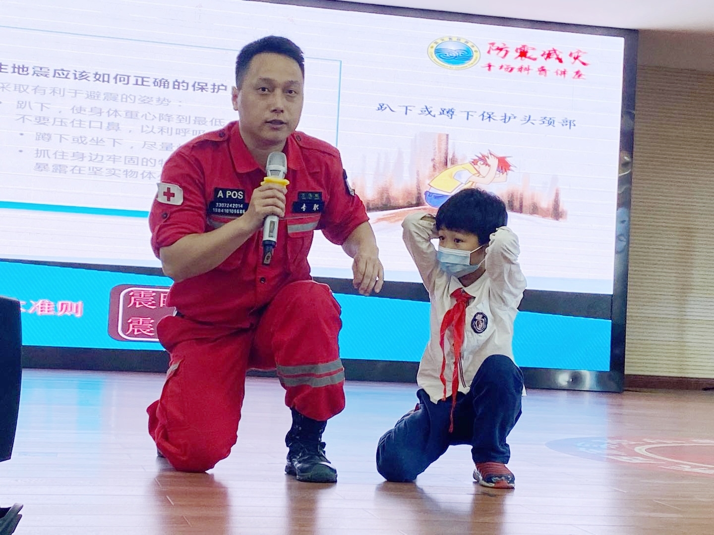 今年,学校邀请救援队讲师万伟刚为全体师生上了一堂“认识地震,科学应对”的科普课。对三(2)班学生姚禹谦来说,这堂课特别难忘,“万叔叔讲得很有趣,我还当了回小老师,上台示范了避震动作”。