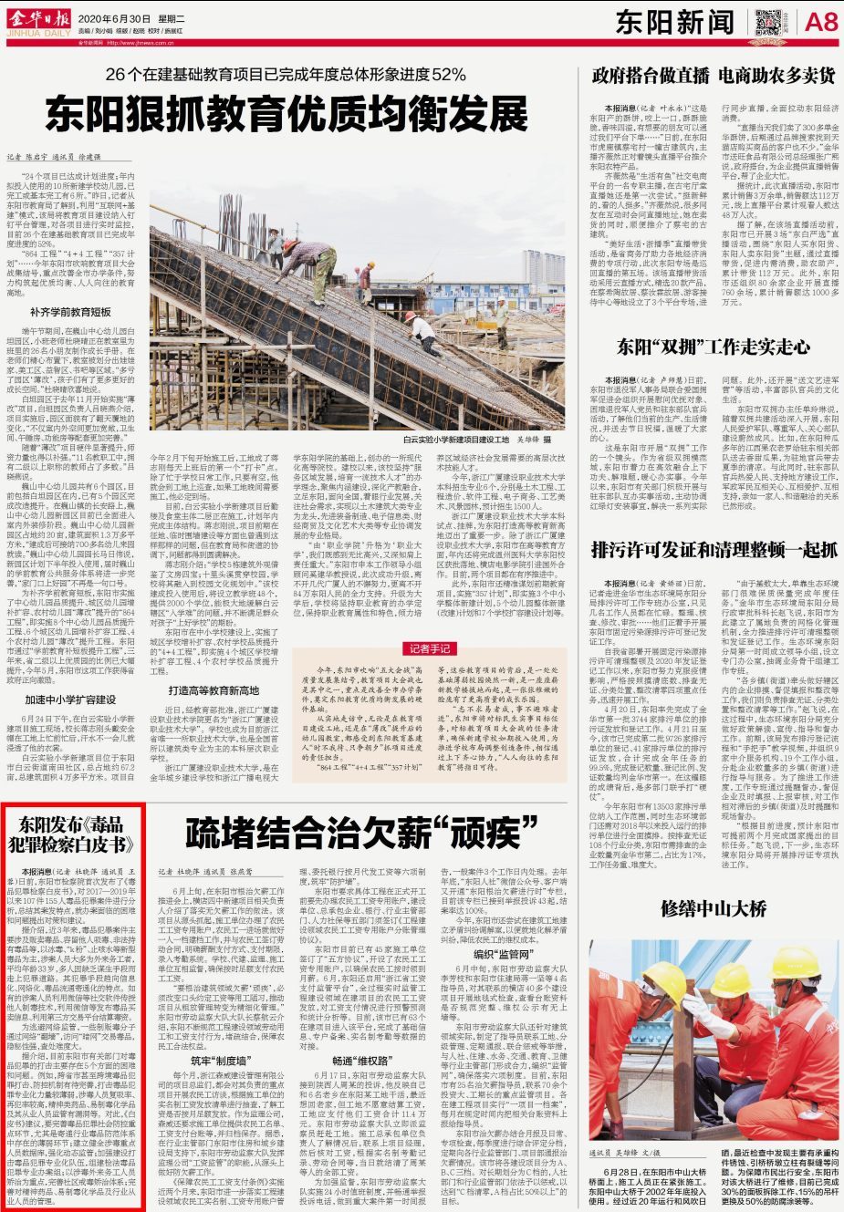 日前,东阳市检察院首次发布了《毒品犯罪检察白皮书》,对2017—2019年以来107件155人毒品犯罪案件进行分析,总结其案发特点,就办案面临的困难和问题提出对策和建议。