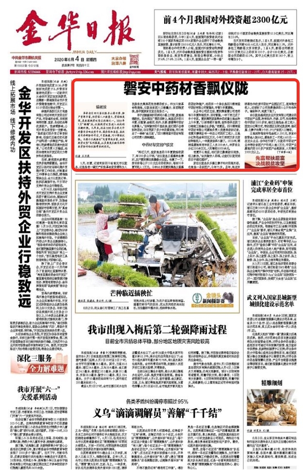 据了解,自2018年4月结对帮扶以来,磐安县共派了10余名中药材专业技术人员赴仪陇挂职,提供中药材播种、施肥、上药等技术指导,不仅带去磐安经验,还全程提供智力支持。依托磐安“江南药镇”的人才、技术、市场等特色优势,短短1年时间,仪陇形成了“龙头企业+合作社+村集体+农户(贫困户)”产业模式,年实现销售中药材1200吨、销售额4500万元。