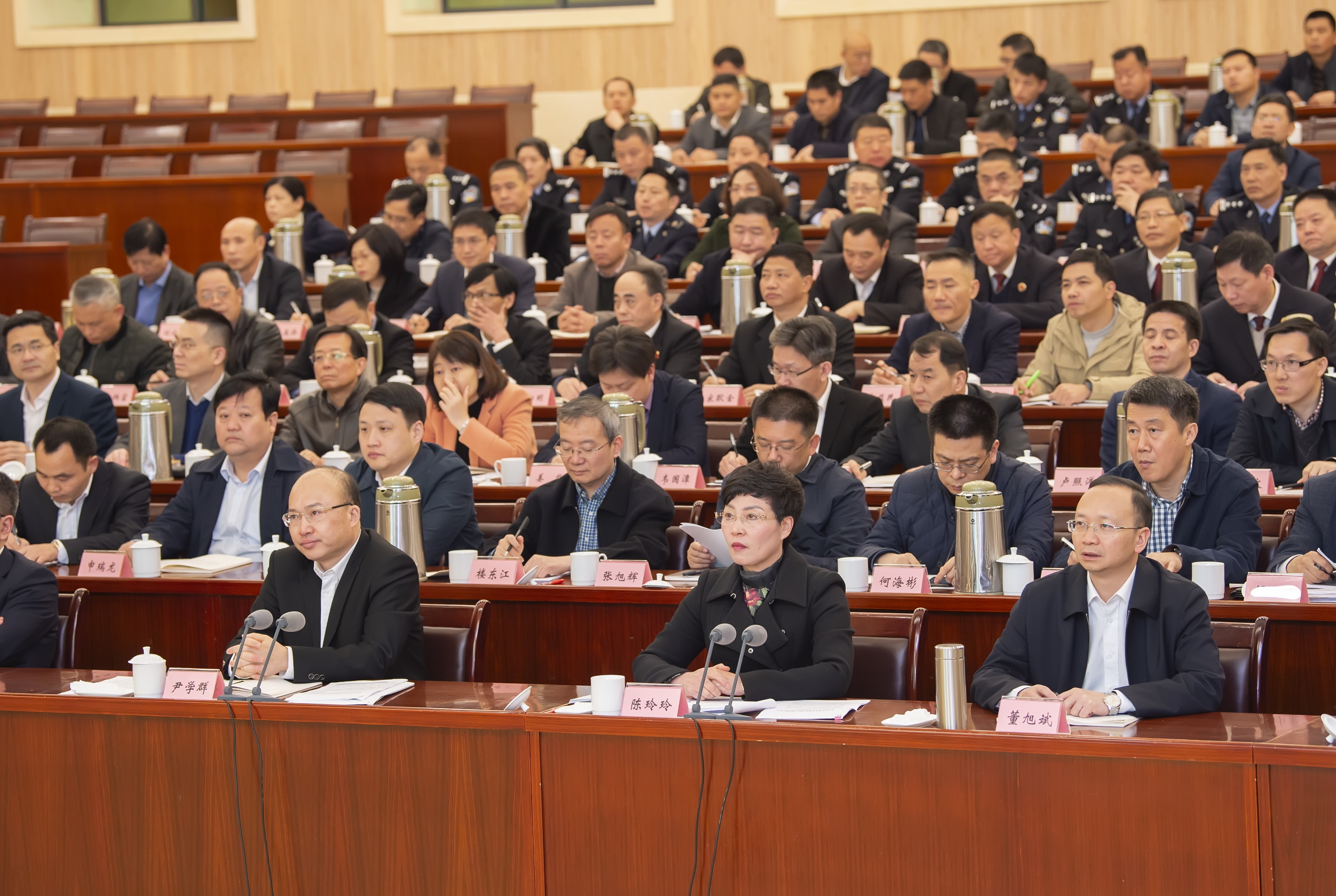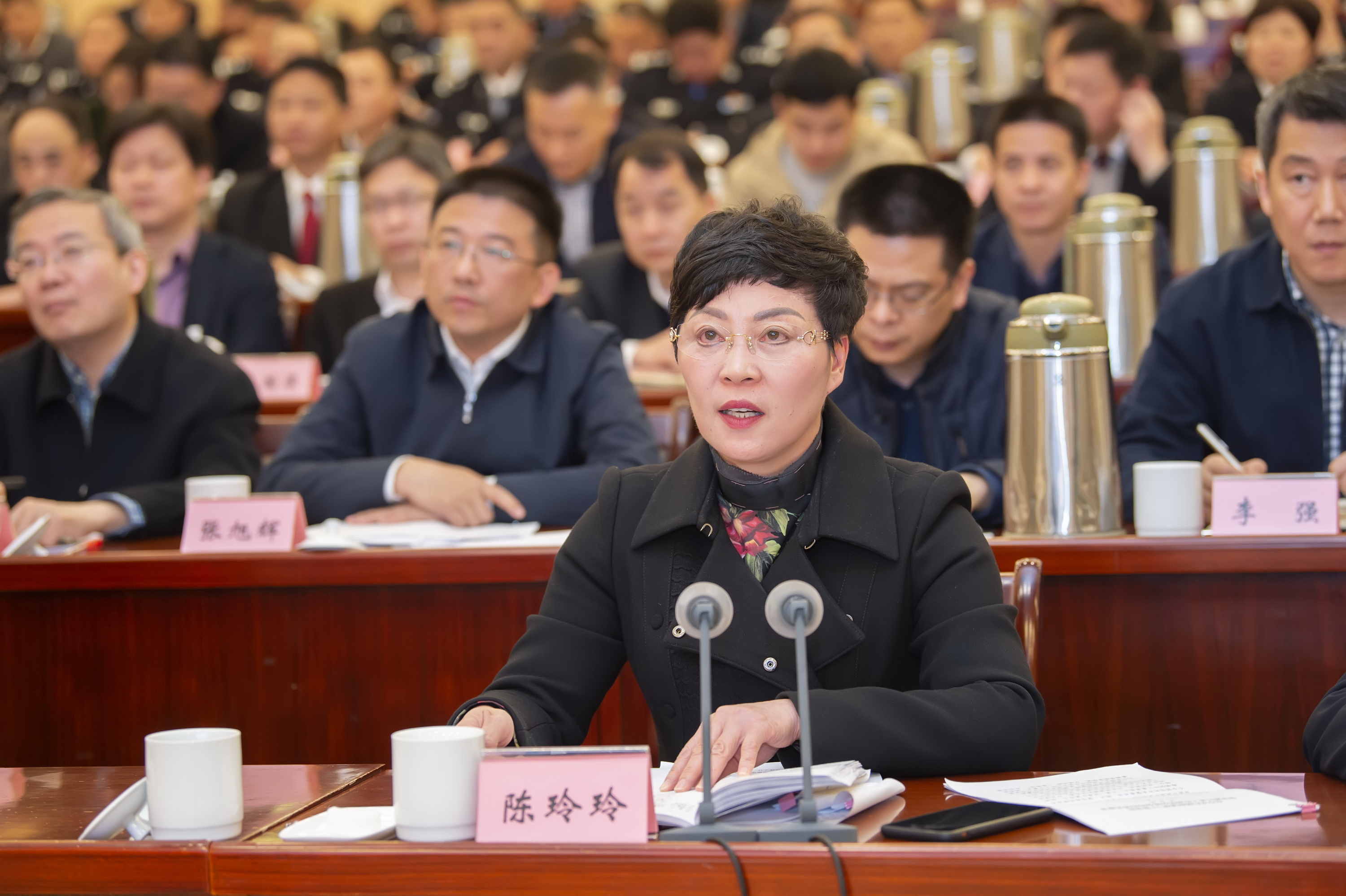 市委副书记、政法委书记陈玲玲主持会议。市委常委、市纪委书记、市监委主任郎文荣,副市长、公安局长董旭斌,市中级法院院长汤海庆,市检察院检察长毛建岳参加会议。