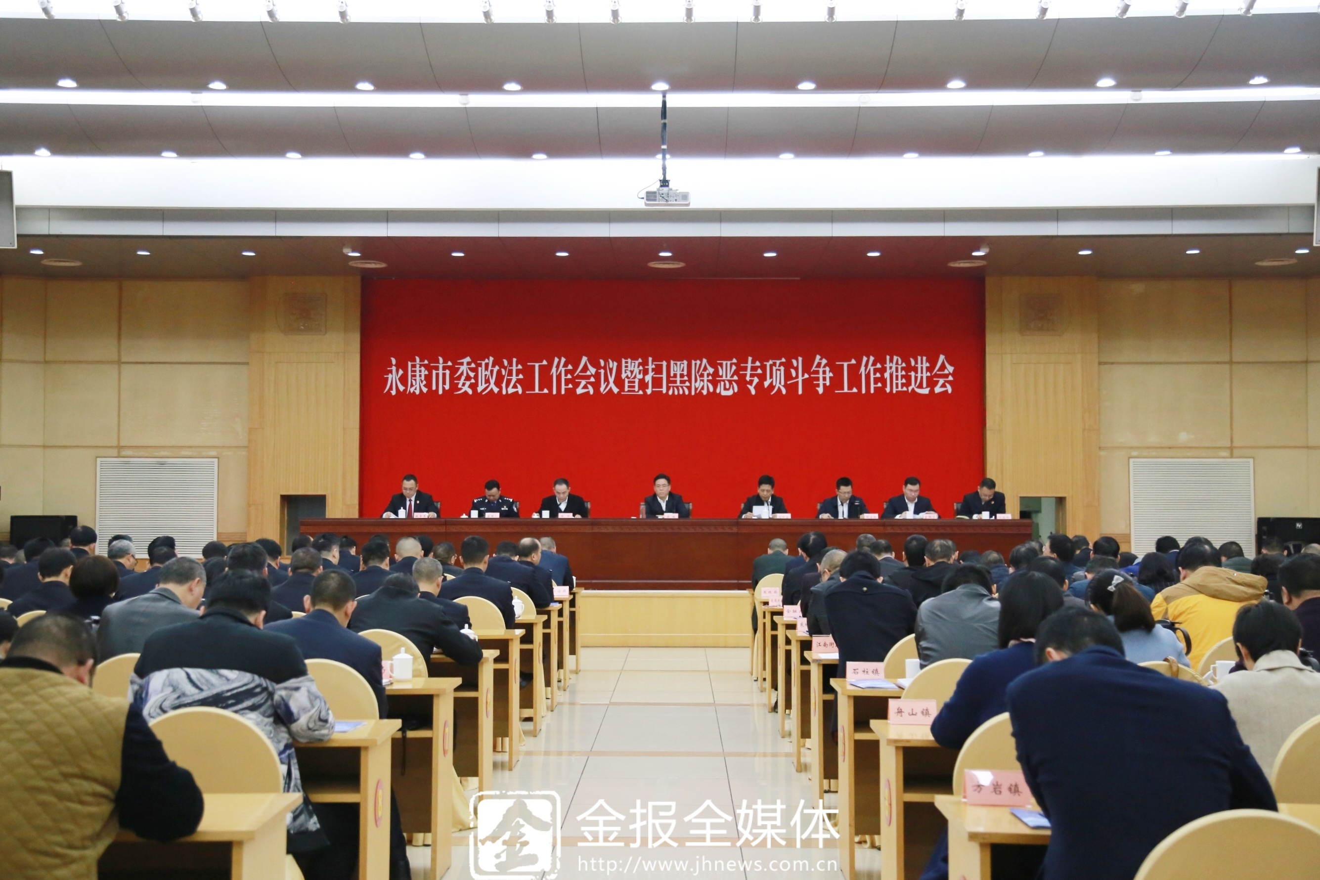 今天上午,永康市委政法工作会议暨扫黑除恶专项斗争工作推进会召开。永康市委书记金政强调,要坚决扛起防范化解重大风险的政治责任,切实维护和谐稳定的社会环境,果断重拳出击,以千钧之力、雷霆之势不断把扫黑除恶专项斗争推向深入,为永康经济社会高质量发展提供坚实的政法保障。