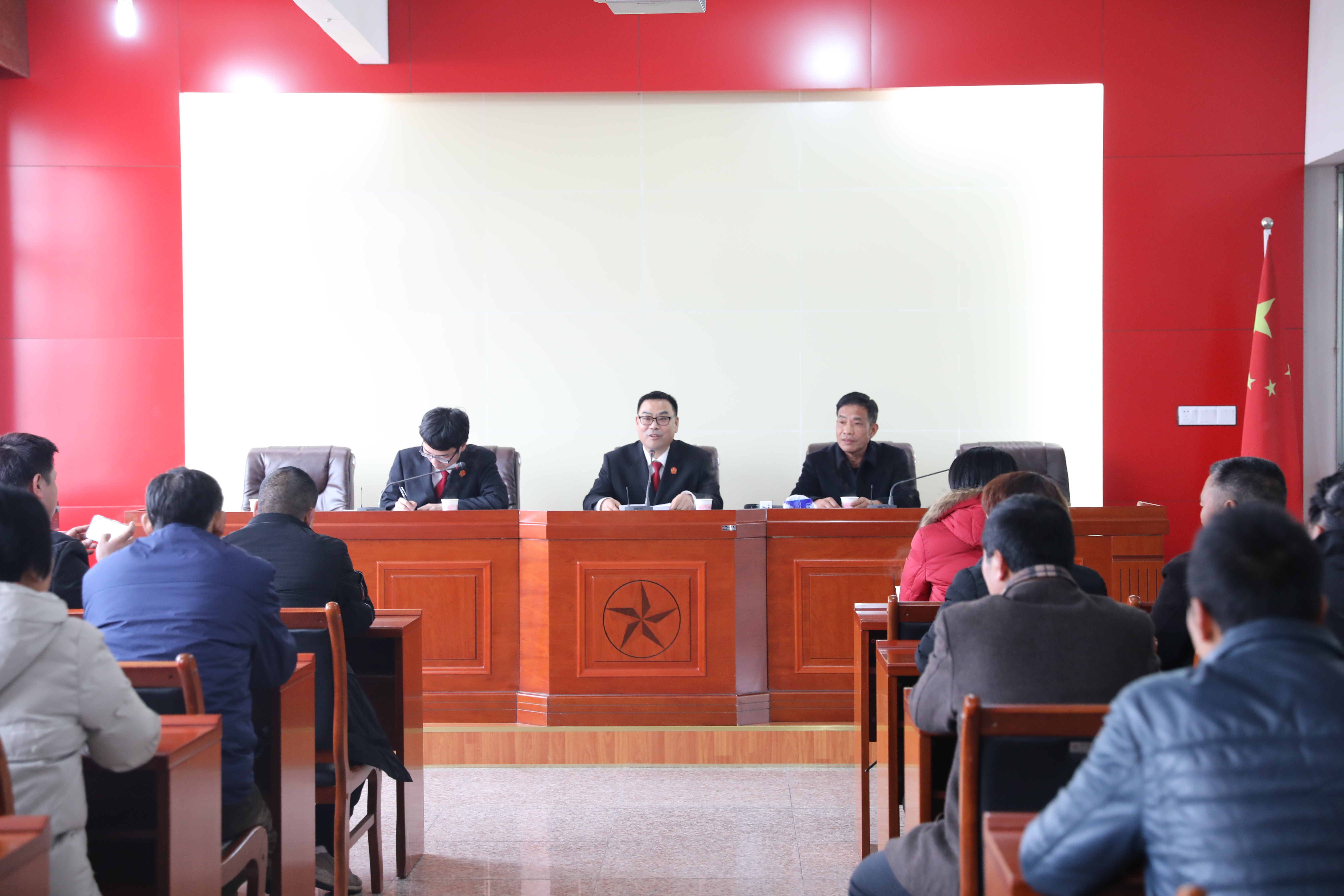 下午15点,培训会一结束,潘文接便赶到西溪镇政府,参加该镇的综治工作联席会议。据介绍,为了将矛盾纠纷尽可能化解在基层、化解在萌芽,龙山法庭所在辖区的龙山、西溪两个镇均建立了综治工作联席会议制度——党委政府与公检法司以及市场监管、国土、劳动等部门每月定期交流沟通,对可能发生的矛盾纠纷进行预警评估,分析研判、多元化解等。