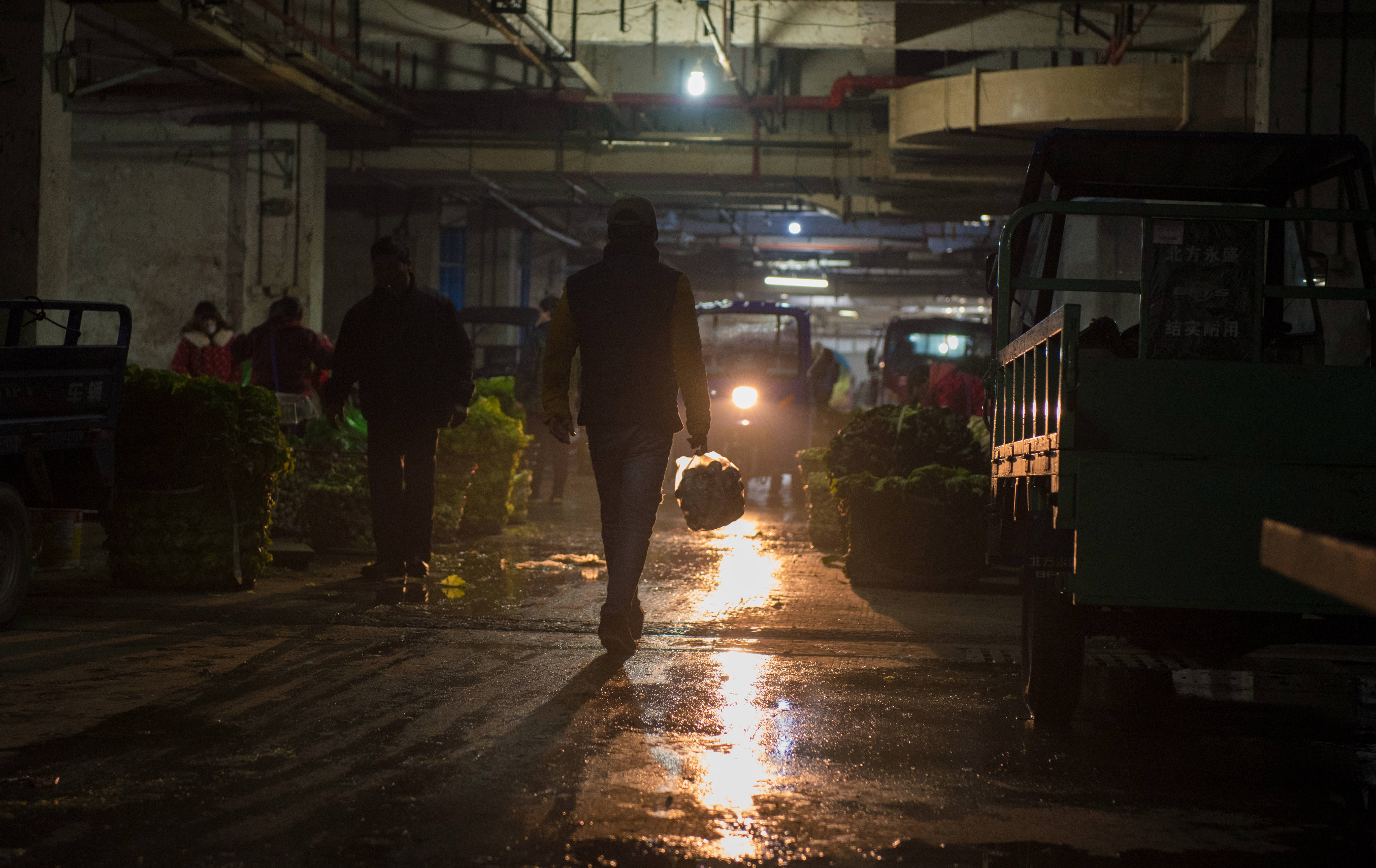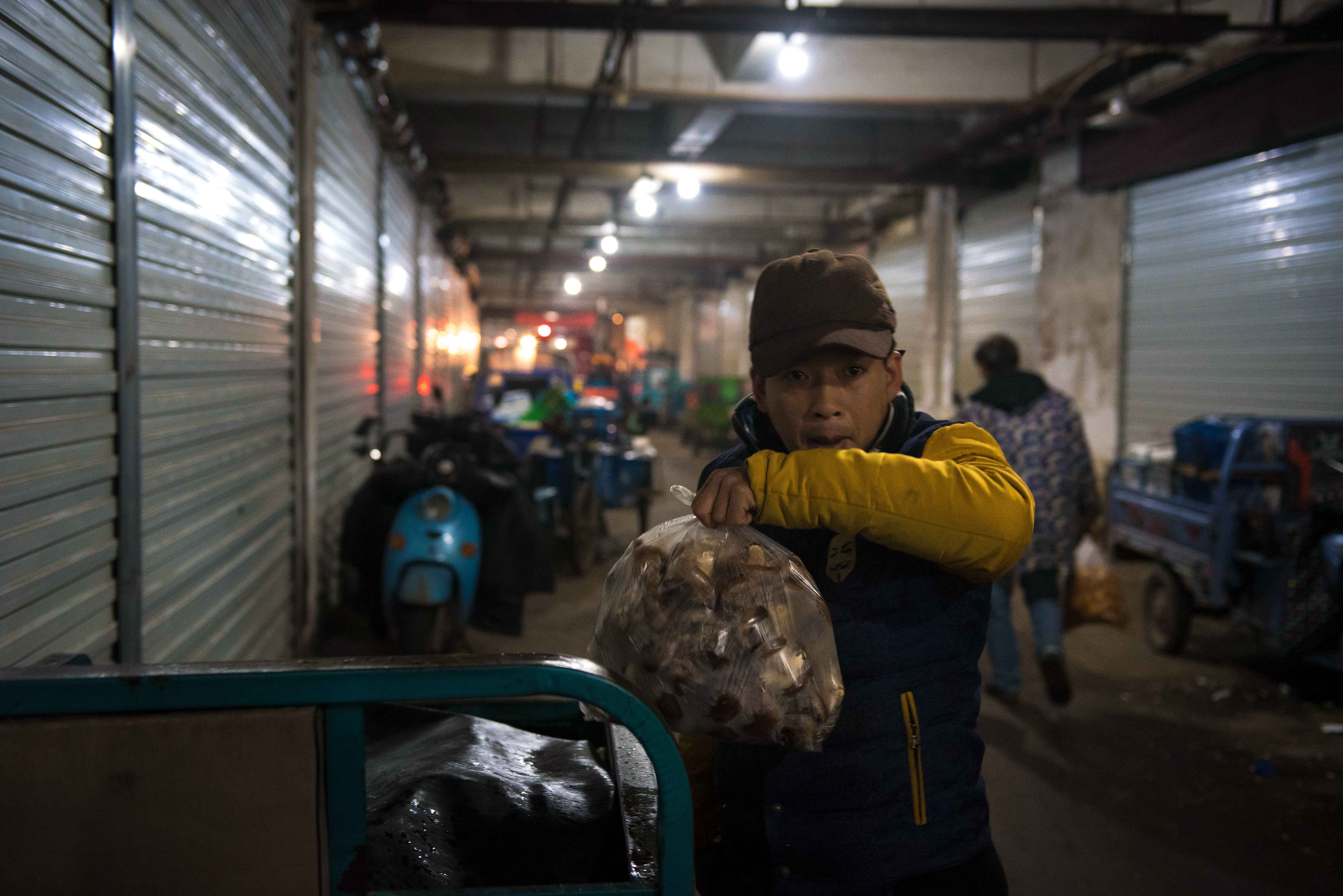 凌晨2点10分,许国强将蘑菇送去绍兴市蔬菜果品批发交易市场