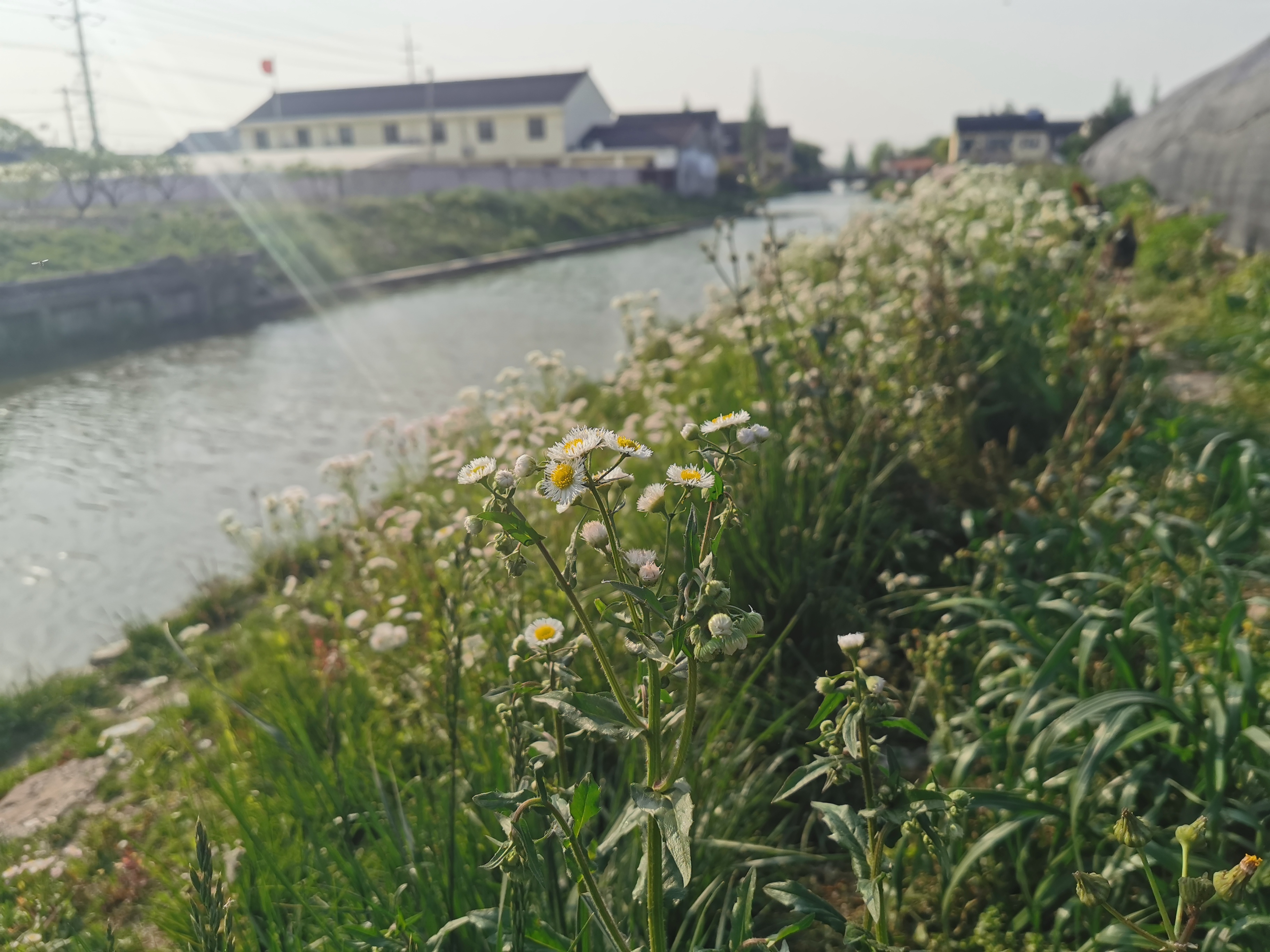 天快亮了,菇棚的轮廓渐渐清晰,簇拥着它们的“一年蓬”野草正迎着晨风绽放。白色的花瓣、金黄的花心,花虽娇小,生命力和适应性却强大,就连窄窄的菇棚缝隙里,都能开出一片花海——就像那些努力打拼的菇农和他们的下一代。