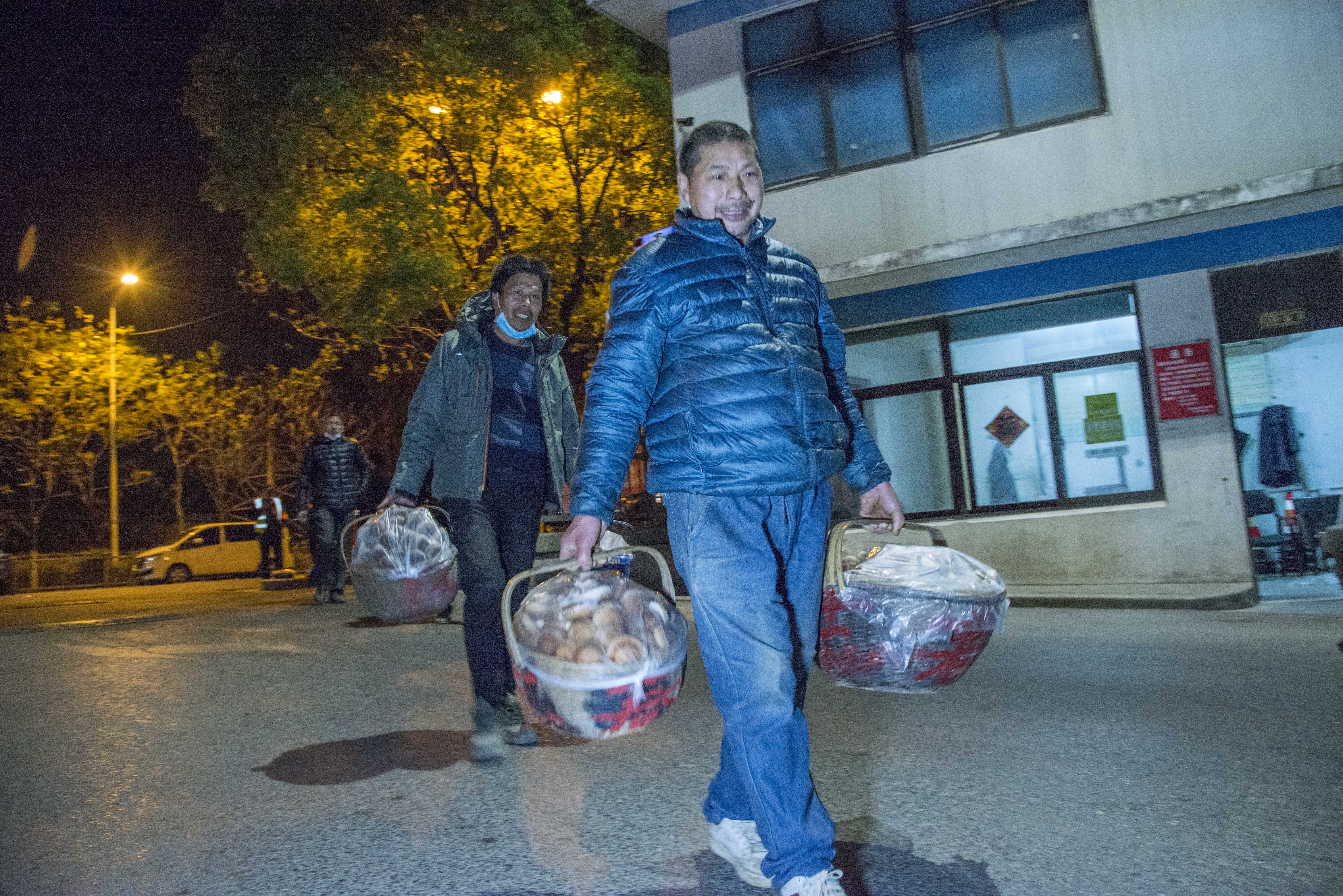 (出于尊重被采访对象的意愿,我们未将小武及其父母的影像呈现在此。图为凌晨在上海青岗蔬菜交易市场卖菇的武义菇农。)