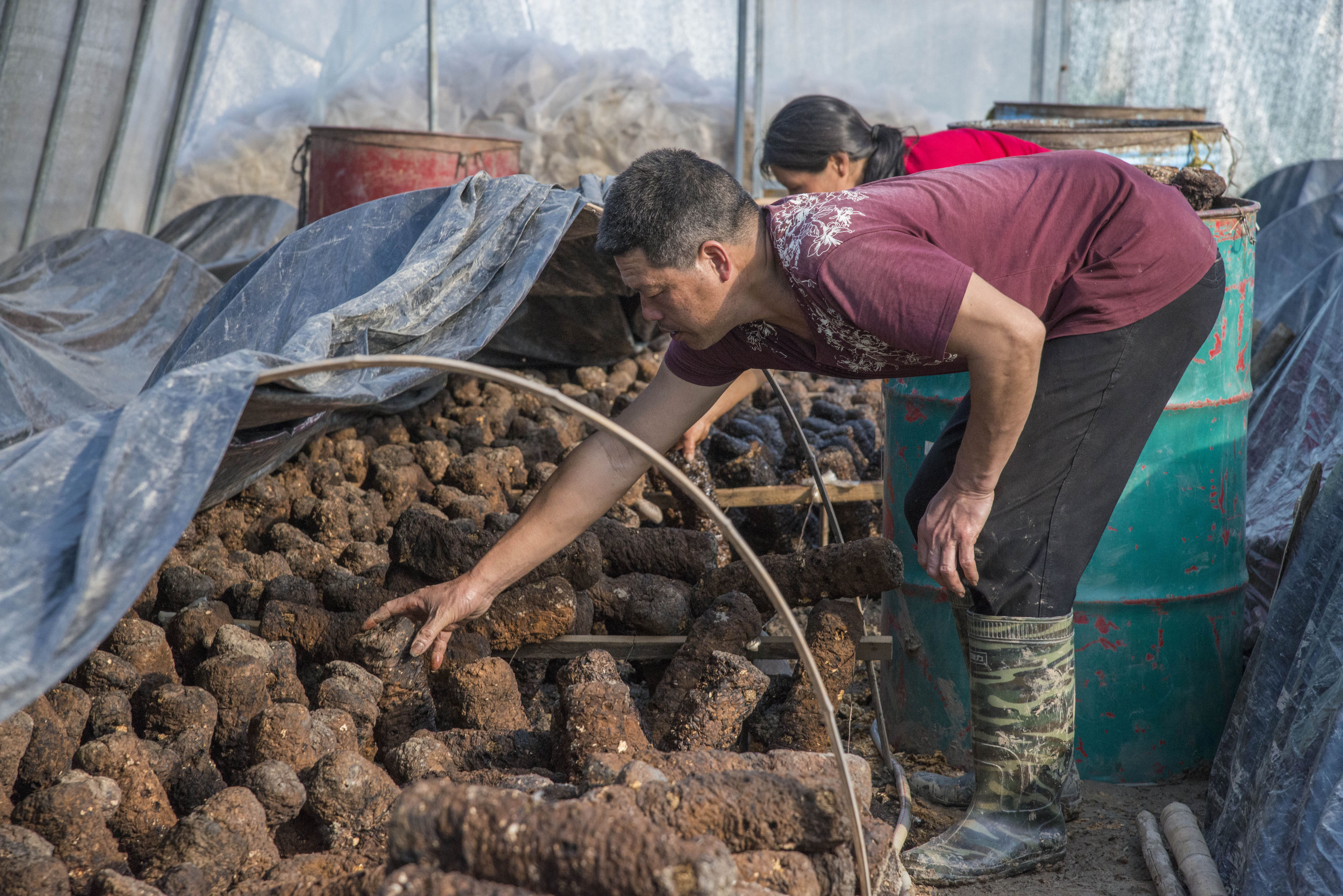 天色渐暗,采水菇的时间到了。傅法春狠狠吸了口嘴边的“上海”牌香烟,径直往菇棚深处走去。