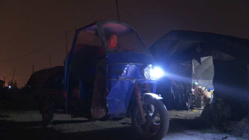 骑着电动三轮车,在田埂、公路、巷道间一路突围,黯淡的橙色路灯下,陈雪兰轻车熟路的样子带着几分帅气。