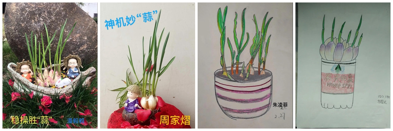 “水培还是土培?整蒜还是掰开?要不要脱皮?”家长在群里抛出问题,科学教师马威答疑解惑,有种植经验的家长也分享种植技术。在蒜苗生长期间,马宝燕指导学生绘制蒜苗高度的条形统计图并分析数据,语文教师徐庆黎指导学生写观察日记,美术教师马倩指导学生进行蒜苗写生。最后,班级评选出最佳种植奖、最上镜蒜苗、最具人气大蒜观察日记等。 这不仅是一场比赛,更结合STEAM教育理念,融入了数学、语文、科学、艺术等多学科,引导学生宅家期间动起来、想起来。“大蒜紧密团结,此次活动正展现了这种团队精神。”马宝燕说,学生间、家长间交流经验、互相帮助,变成更好的团队、更好的自己。
