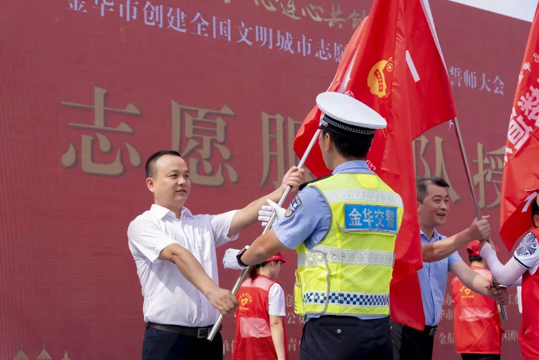 7月1日上午,团市委联合各创建单位举行“红马甲进网格 心连心共创建”金华市创建全国文明城市志愿服务决战决胜誓师大会。会上,市领导陈玲玲、董巧娟、祝伦根、荣安华为我市首台“流动志愿服务车”上线揭幕。