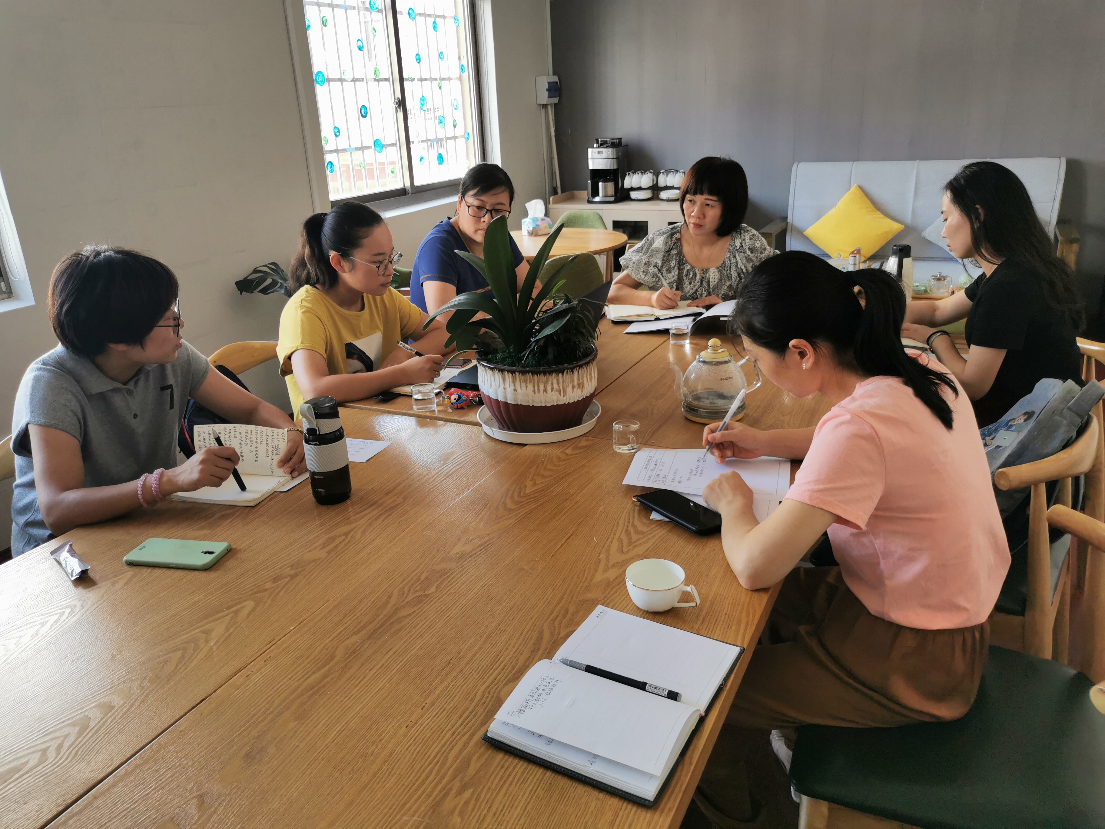 暑假,东阳市江北实幼(第四幼教中心)下范园区美工室,成了教师们的临时会议室。22日,许丽芬、王钱旦、望江园区现场负责人胡嘉佳、山口园区现场负责人朱丽芳、招生宣传组负责人楼汉丽等人,在这开了大半天的会,汇报各组的工作进展及遇到的问题。