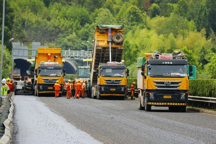 此次路面集约化断流施工,共涉及诸永全线单向450公里,总投入超2亿,路面单项投入超1亿。施工采用全线单向封道形式,施工内容涵盖机电维护、隧道机电设备升级改造、标线恢复、护栏提升、路面大中修、桥面病害处理等诸多专项工程,预计投入摊铺机、压路机、铣刨机等大型机械200余台,车辆700余辆,各类施工作业人员2800人。该施工项目将于8月11日前完工,届时道路将恢复正常通车。