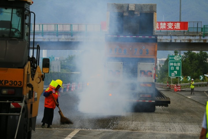 连日来,伴随诸永高速永嘉枢纽杭向封闭,浙江省交通集团诸永高速抓紧时间,有序推进路面集约化断流施工,争取抢在8月中旬前完工。