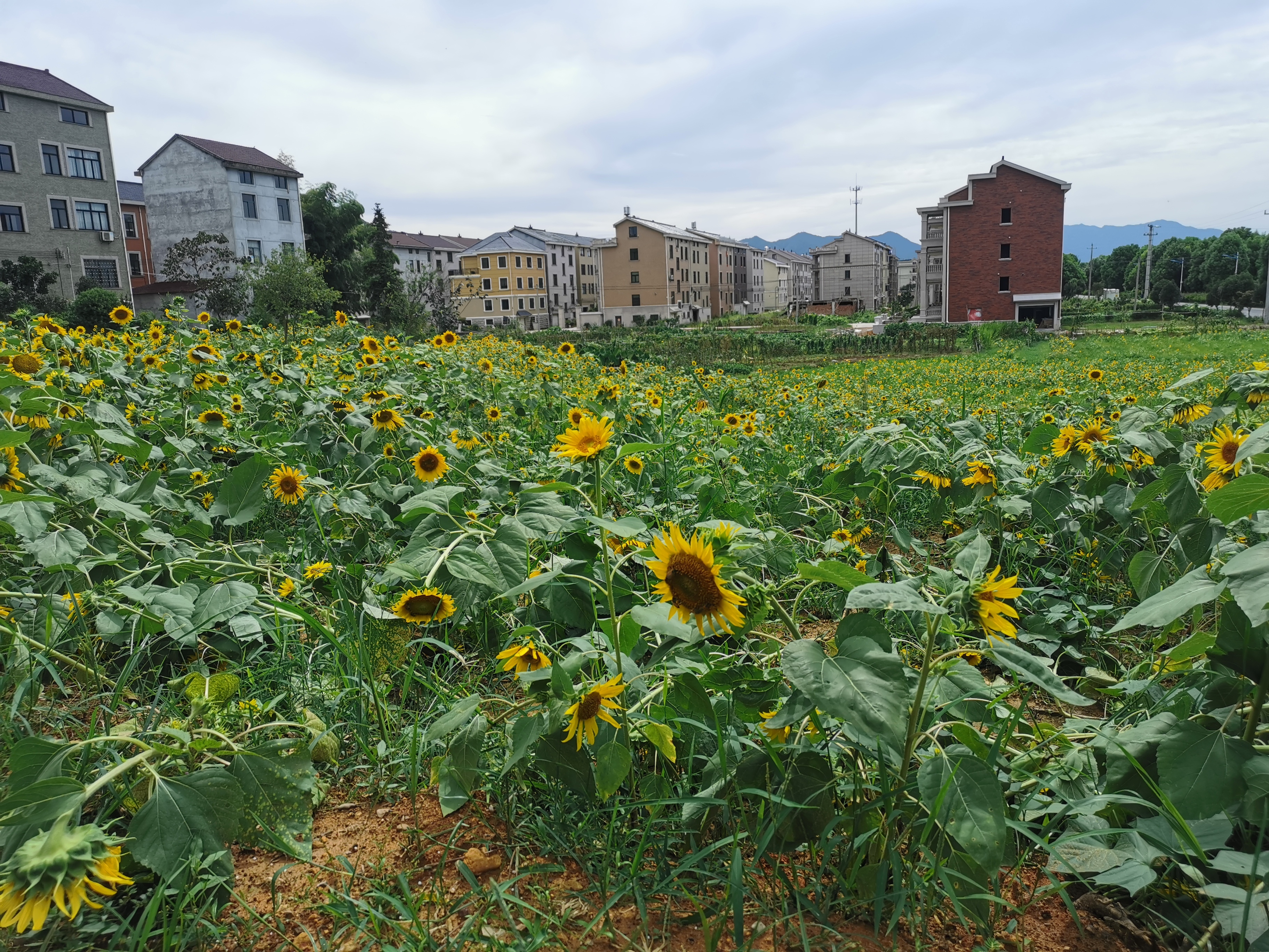 “走,我带你们去看看村里栽种的15亩向日葵。”跟着李茂良的步伐,记者看到了一片金灿灿的向日葵,大片的向日葵与村舍、远山以及蔚蓝的天空,构成了一幅美丽的画面。