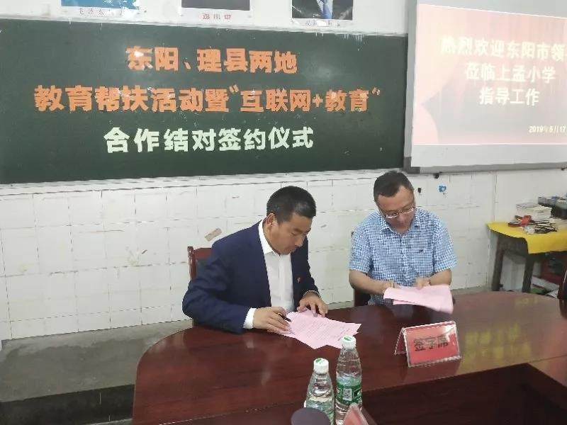 去年5月,巍山第一小学教育集团校长金俊华赶赴四川理县,和上孟小学校方签订了“互联网+义务教育”合作帮扶协议。同时,去年,东阳市教育局为上孟小学安装了价值40万元的同步课堂设备。据悉,上孟小学地处偏僻高原山区,曾是四川西部极度贫困地区之一。“一块屏幕”,连起了两所相隔2000余公里的学校。此外,巍山校区还和东阳市虎鹿镇白溪小学结对。