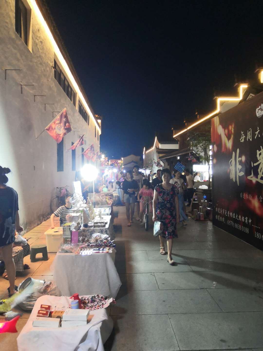 非遗街区还积极融入卢宅景区的夜市中。平时,非遗夜市每周六开放,8月15日至9月14日期间每晚常态化运营,每周两个非遗项目“出摊”,有土布香包、锡艺、针刺无骨花灯、竹编、古砖拓印、陶艺等。此外,夜市设有东阳传统民俗演出、汉服游灯会、文创展销、东阳小吃等,向大众展示东阳地方特色文化。