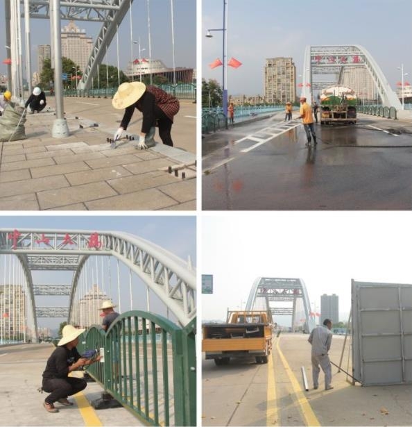 为保证中山大桥的顺利通车,东阳市综合行政执法局各部门联动做好中山大桥通车前围挡拆除、护栏安装、卫生清理等工作。东阳市综合行政执法局有关负责人提醒,因现场还有部分施工扫尾工作,所以还限制黄牌车、行人和非机动车通行。