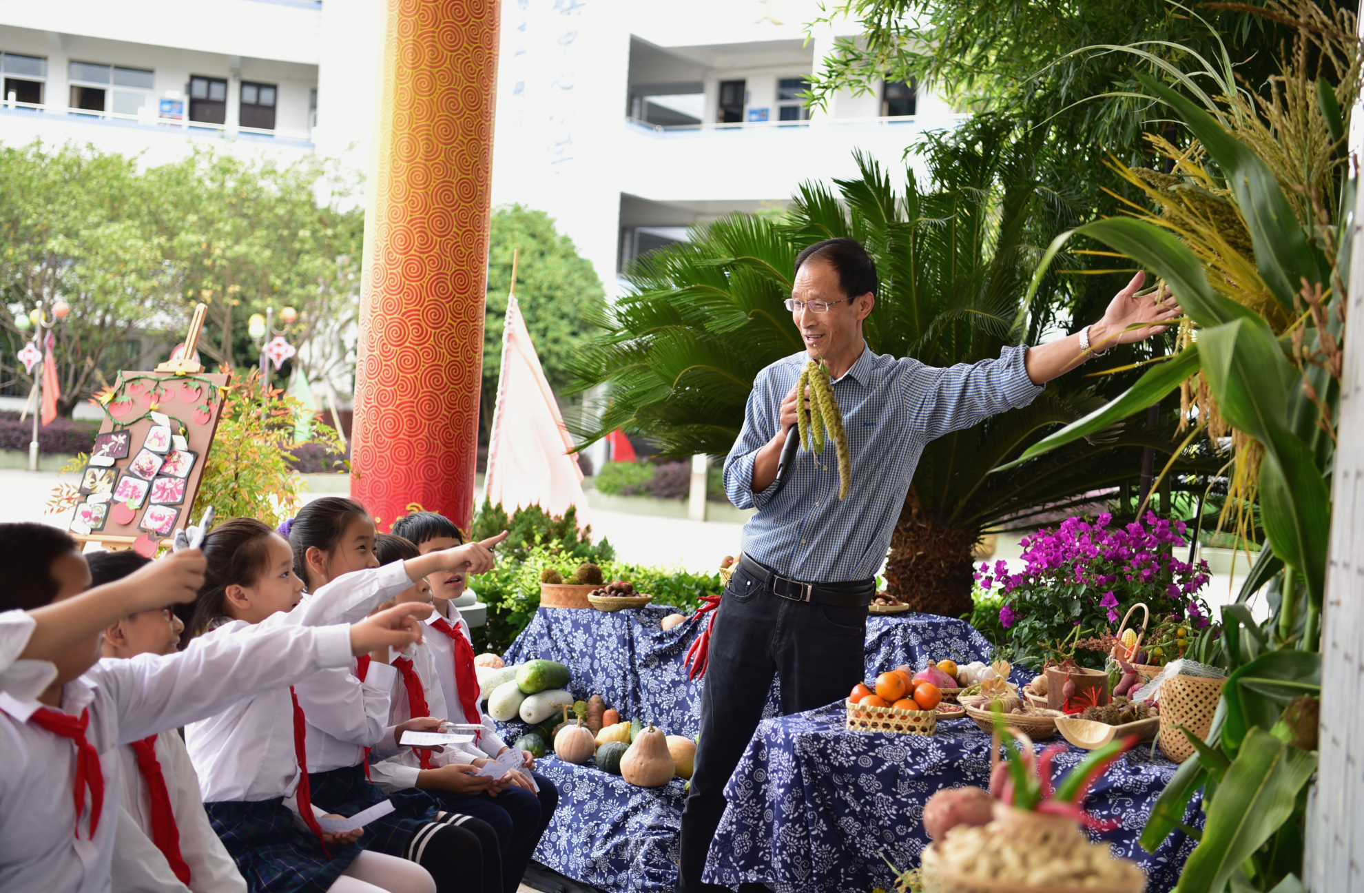根据不同年龄段学生的特点,每个年级采取不同的形式来庆丰收。