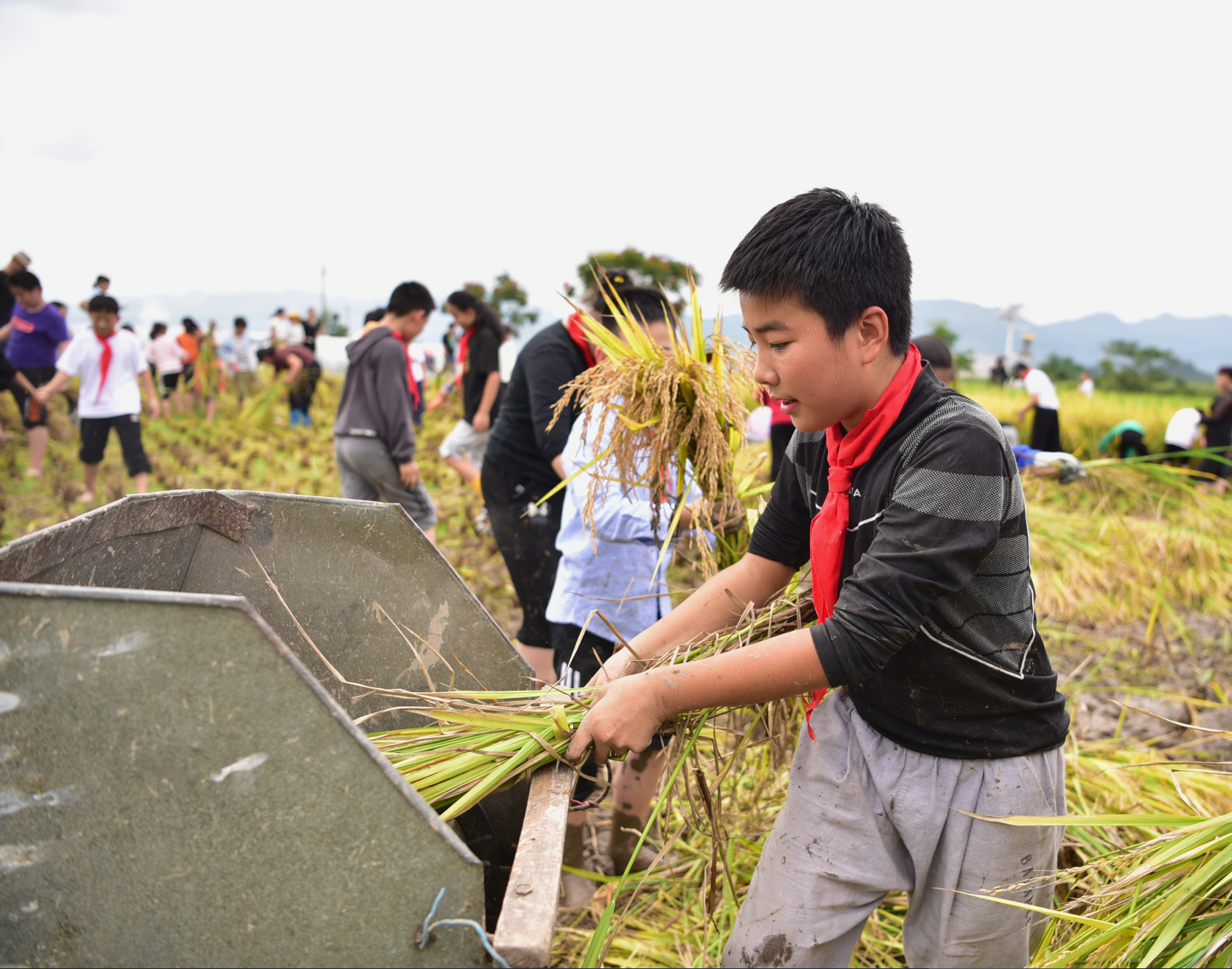 五、六年级各班组织10名学生,并邀请家长一起走进田间地头,尽享秋收喜悦。