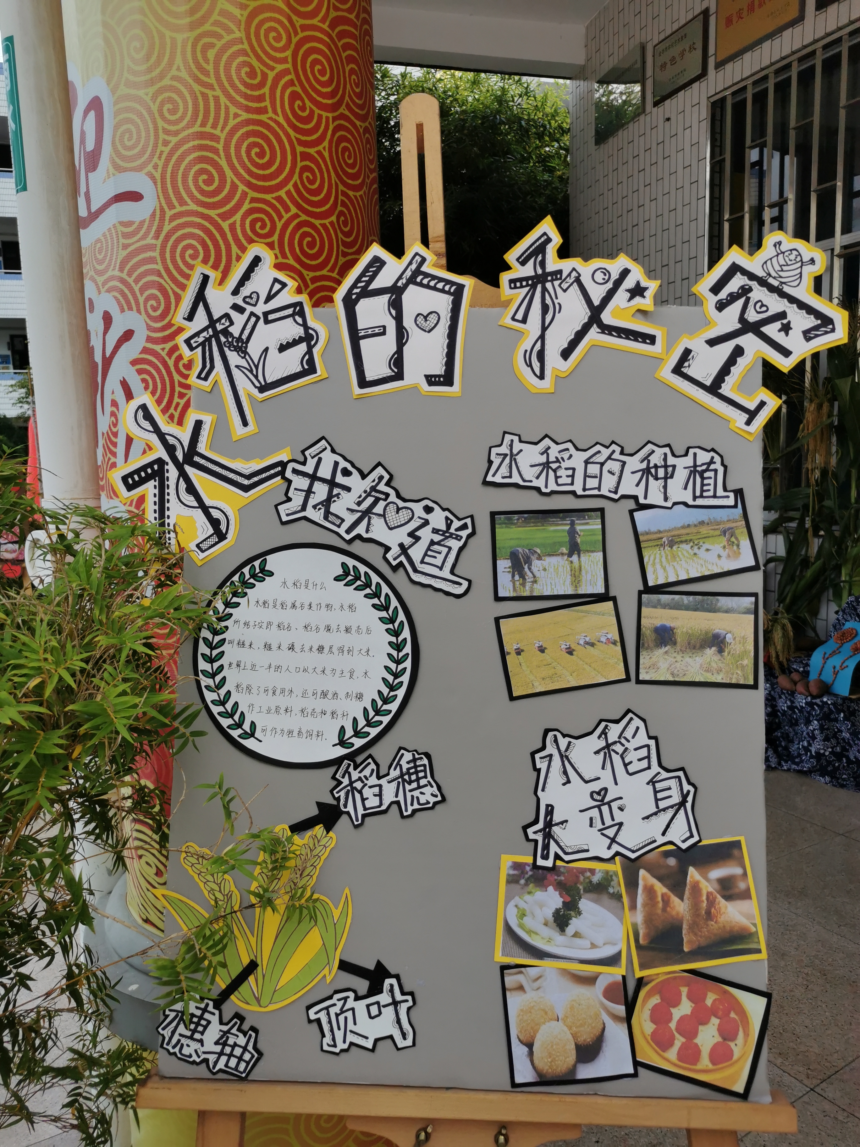 二年级制作展牌,图文并茂,向学生展示各种农作物的生长特点。