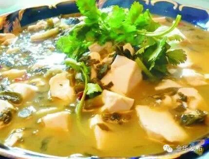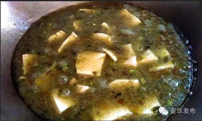 烂菘菜滚豆腐一直置放汤溪乡下,婺城似乎难闻其芳香。如此这般表述汤溪人生活,恐因爱屋及乌之心态。因为人对滋味的认知是相当主观的,就像人对颜色、气味或美丑的感受一样。更何况,一地一口味,某个地方的人膳食非此不欢的事例也比比皆是———许多人对臭豆腐情有独钟,也有许多人却绝对不碰 它。