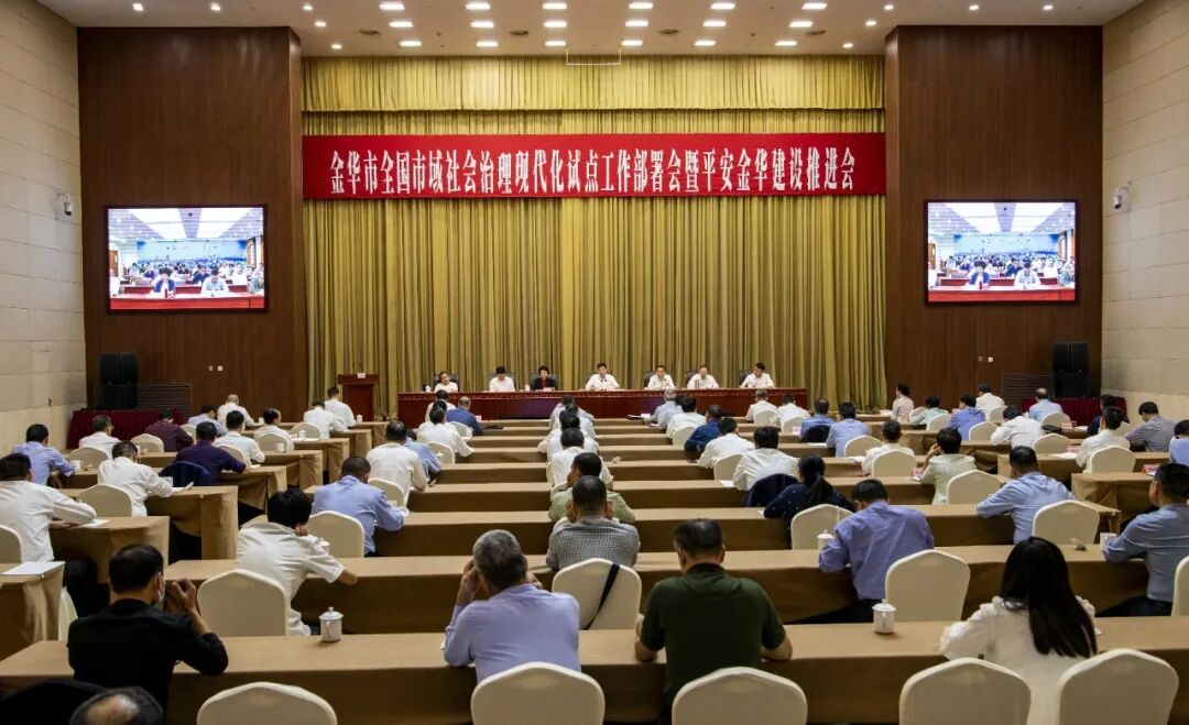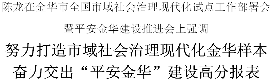 10月13日,金华市全国市域社会治理现代化试点工作部署会暨平安金华建设推进会召开。市委书记陈龙出席并讲话,强调今年既是试点工作启动之年,也是我市争创星级平安金鼎之年,要深刻认识这两项工作的重要意义,咬定目标、狠抓冲刺、全力攻坚,努力打造市域社会治理现代化金华样本,奋力交出“平安金华”建设高分报表。