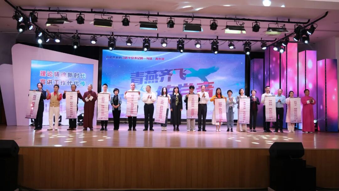 活动现场,今年年近八旬的知名说书人盛根旺还现场收起了徒弟,“旺二代”——区实验小学教师方振和区卫健局工作人员曹思远等宣讲队员,从盛根旺老师手上接过意味着传承、责任与使命的接力棒,加入到传播党的创新理论的征程中。