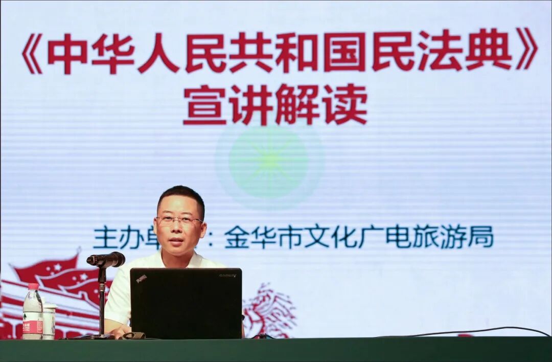 金华市司法局金华普法志愿团由多名律师组成,是一支活跃在一线的法律宣传服务团队。团队旨在通过深入学习宣传习近平总书记关于全面依法治国的重要论述,学习宣传以宪法为核心的中国特色社会主义法律体系,学习宣传重点工作和重点领域的法律法规,引导群众学习法律、运用法律,提升法治素养。近年来,团队先后开展了《民法典》、《民营企业发展促进条例》等主题宣讲宣传活动。组织相关讲座10场,网络直播2场,覆盖受众25000余人次。充分运用多种宣传形式,积极参与《金华普法》节目录制,开展法律法规知识学习活动,利用新媒体推送普法资讯、典型案例等200余条,不断增强群众法治观念,构建和谐社会的良好氛围。