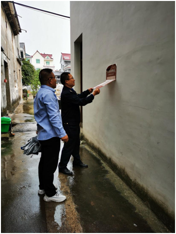 近日,兰溪市综合行政执法局香溪中队的执法队员们在巡查香溪镇老街时发现,沿线民居墙上张贴有多张某房产公司的宣传海报。