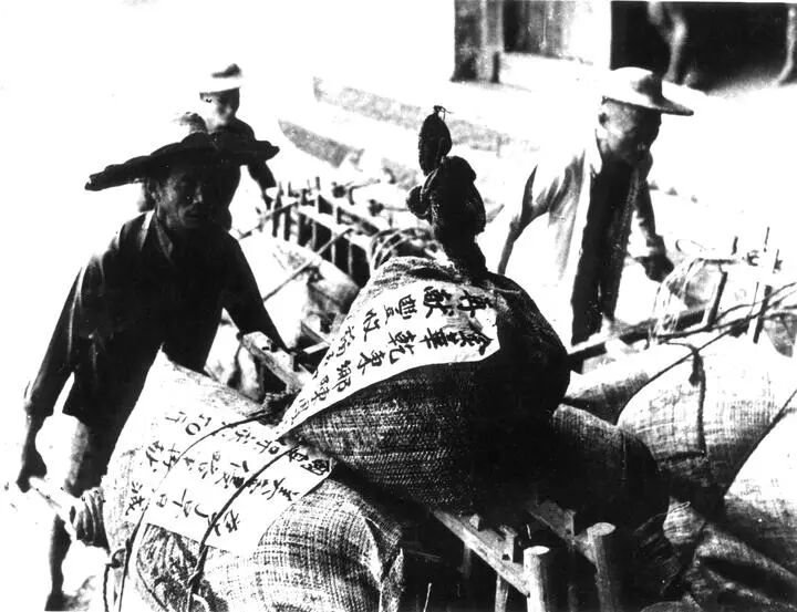 金华县乾东乡农民捐献丰收粮食支援抗美援朝