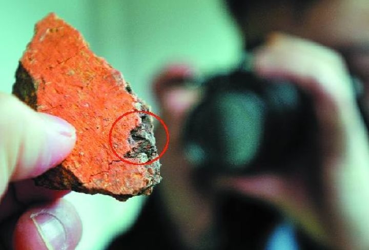 山下周遗址出土的夹炭陶表面发现疑似稻谷的印痕。