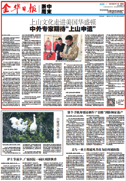 早在去年5月11日,本报即在显著位置刊发报道《上山文化走进美国华盛顿 中外专家期待“上山申遗”》。文中,浙江省考古研究所资深研究员蒋乐平透露,植物考古学家、加拿大科学院院士、多伦多大学教授Gary Crawford在参观了永康湖西遗址后认为,钱塘江早期新石器文化遗址群具有申请世界物质文化遗产的潜在价值。