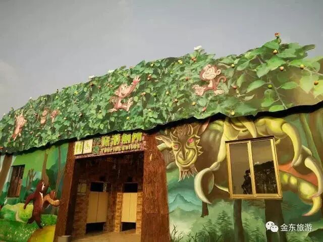 青蛙乐园的旅游厕所墙体上绘着青蛙与荷塘,与乐园相呼应,设计充满童趣。