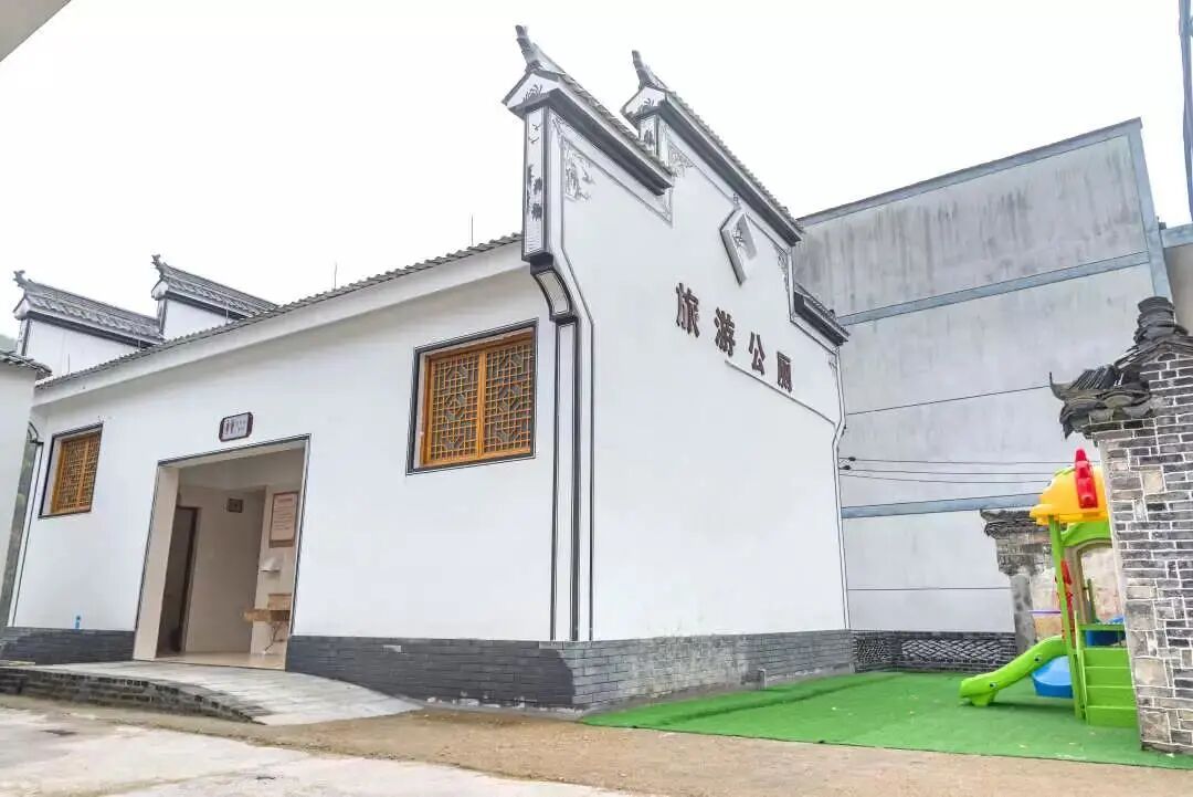 洞井村旅游厕所与村内古建筑群融为一体,内部装修整体简洁明快,其最大的特点是外部设有儿童休息区。