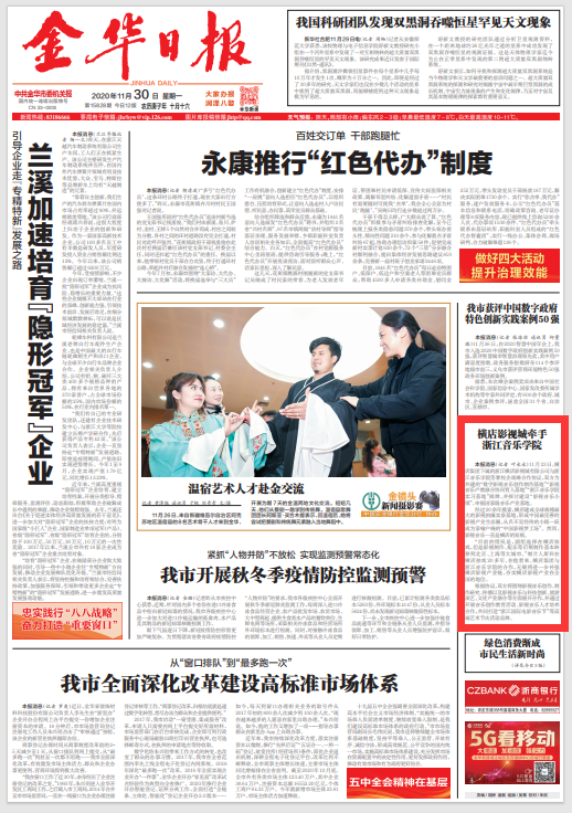 凡注有"金华新闻网"或电头为"金华新闻网"的稿件,均为金华新闻网独家版权所有,未经许可不得转载或镜像;授权转载必须注明来源为"金华新闻网",并保留"金华新闻网"的电头。