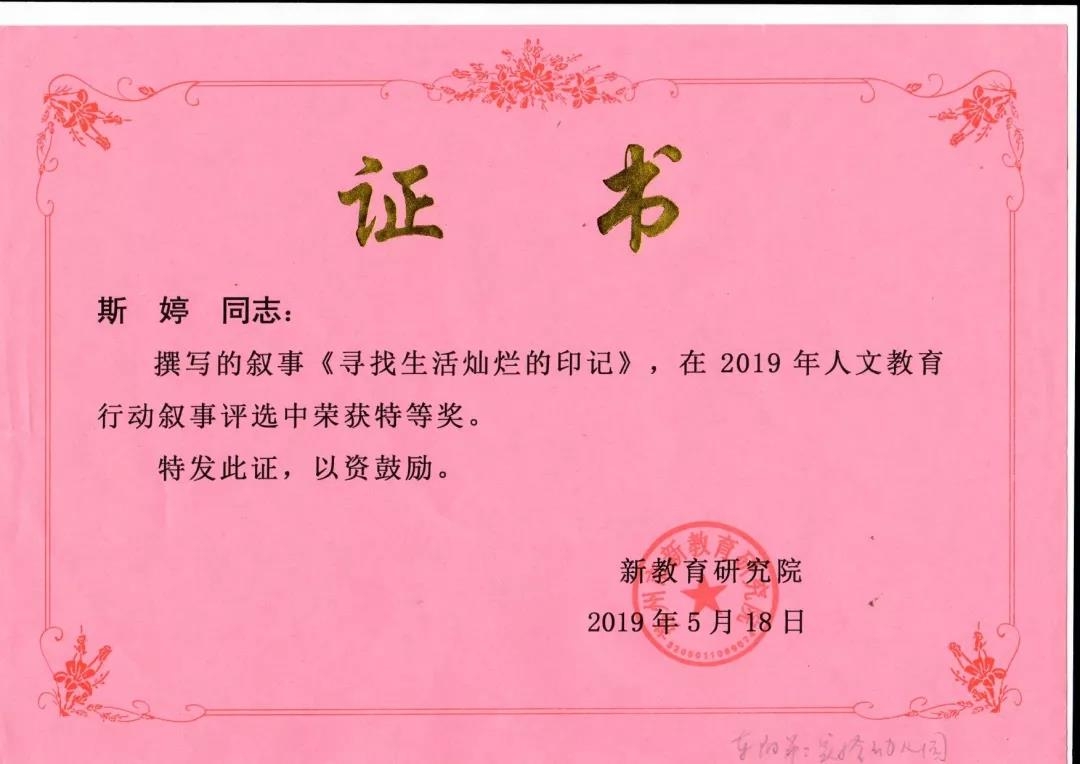 这不是东阳实验二幼教师首次获得高规格荣誉。此前,斯婷撰写的《寻找生活灿烂的印记》,获2019年全国人文教育行动叙事特等奖;教师斯胜男撰写的《人生新阶段的别样幸福》,获2017年全国新教育生命叙事大赛特等奖。