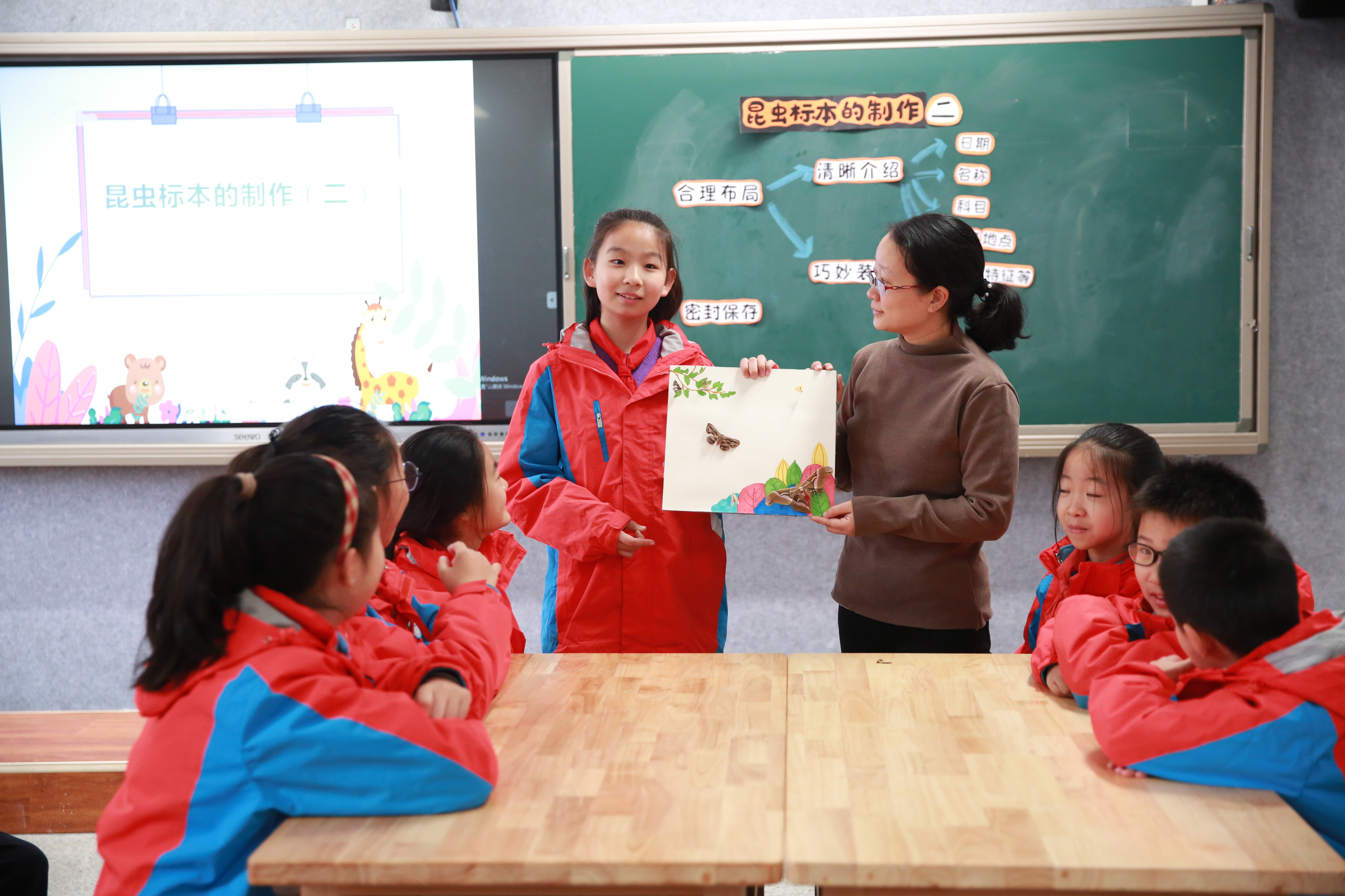 值得一提的是,“建造昆虫博物馆”项目组包含了各科教师,如黄鼎滴就是执教数学的。据悉,吴宁五校以项目形式推进“七小七大”校本课程的建设,每个课程都设有一个项目组,由跨学科教师组成。“我们可以跳出自己的专业,在学科融合中增加知识面,提升综合能力。”黄鼎滴表示,通过项目研究,她丰富了科学知识、提高了审美能力,看着学生们为昆虫标本作诗,她也开始接触诗文。
