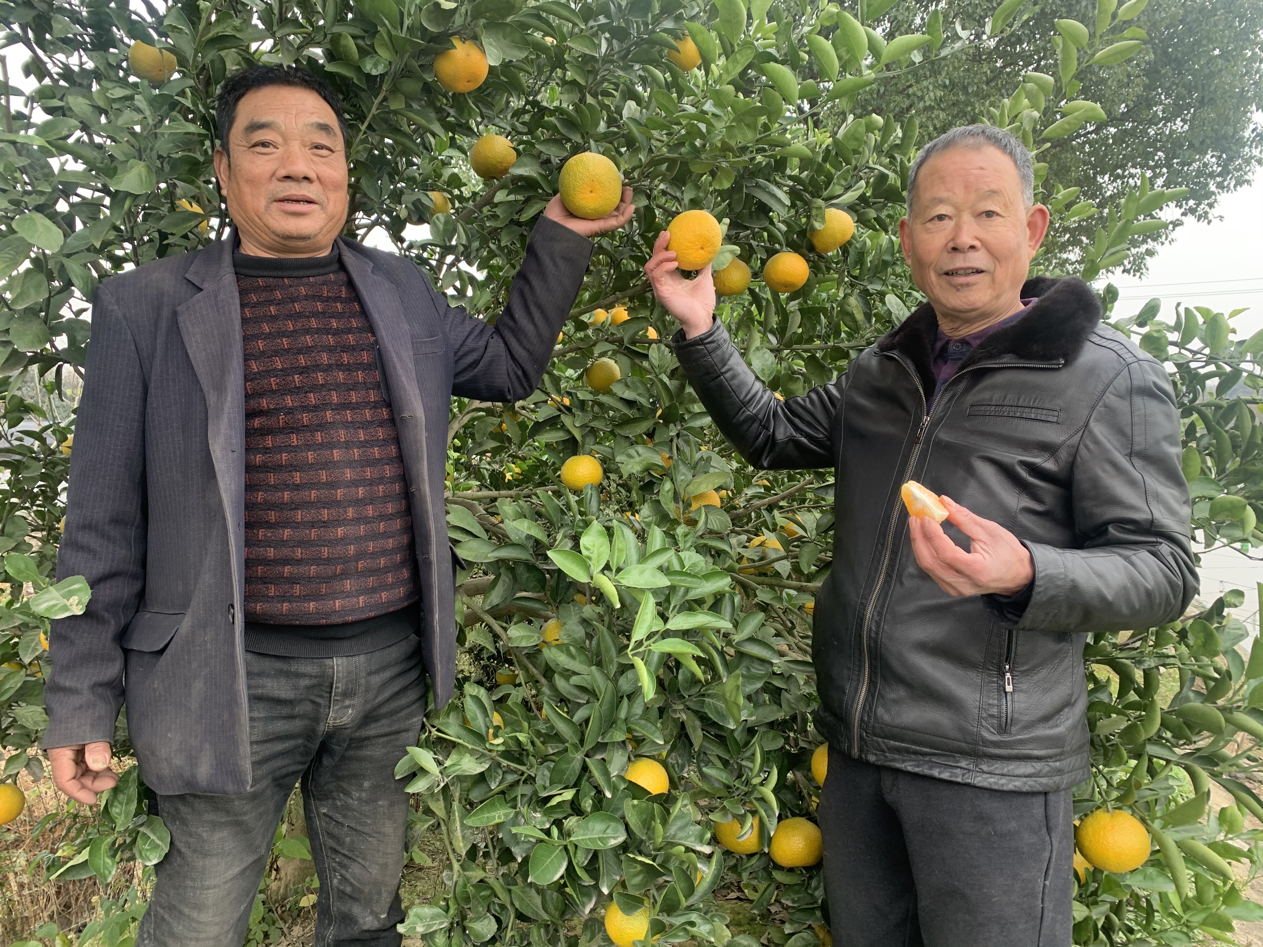 这片“清甜橘柚”,是方家村67岁的郑文飞大伯和60岁的曹志清大伯,一起精心培育而成,足足耗费了5年多时间,一次次试种优选最终栽培出了清甜爽口冰糖甜味的橘柚,首次上市便成市场“宠儿”,品尝过的消费者买了又买。