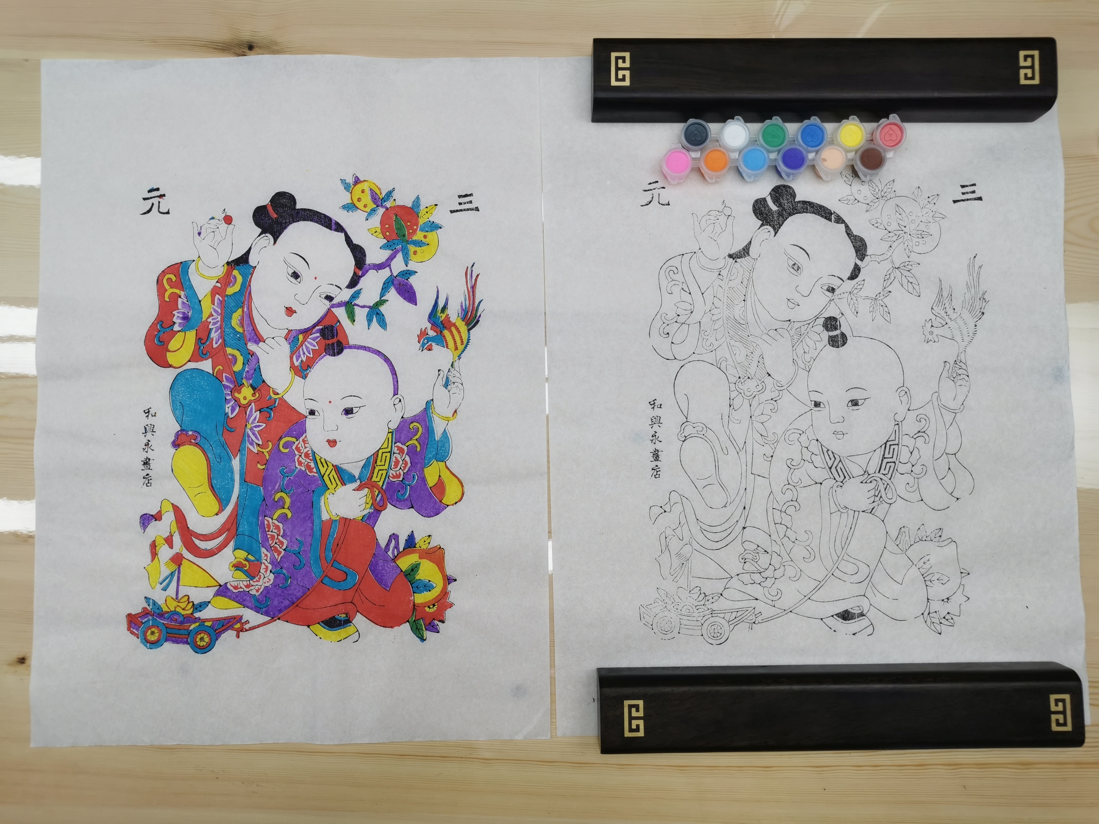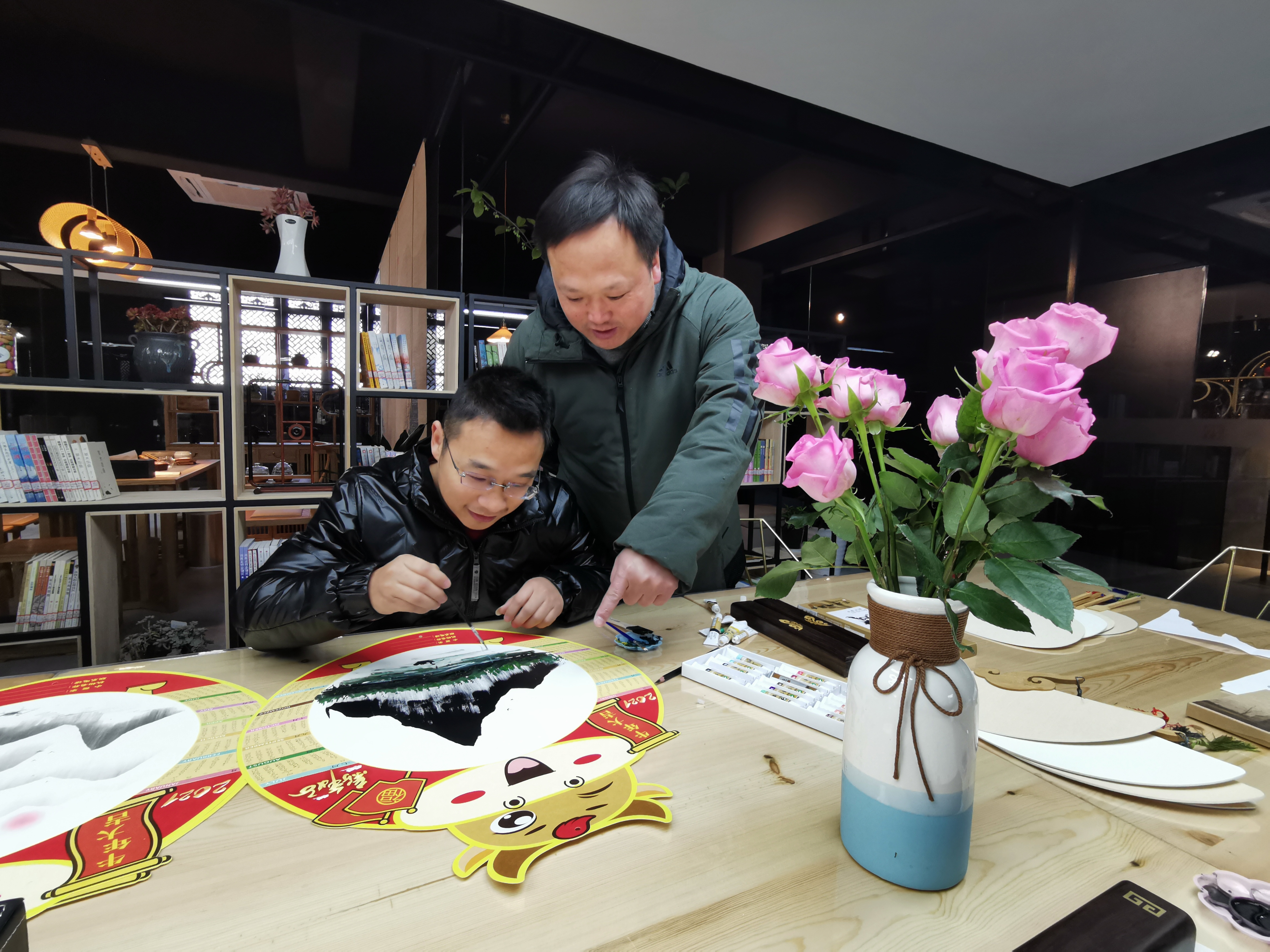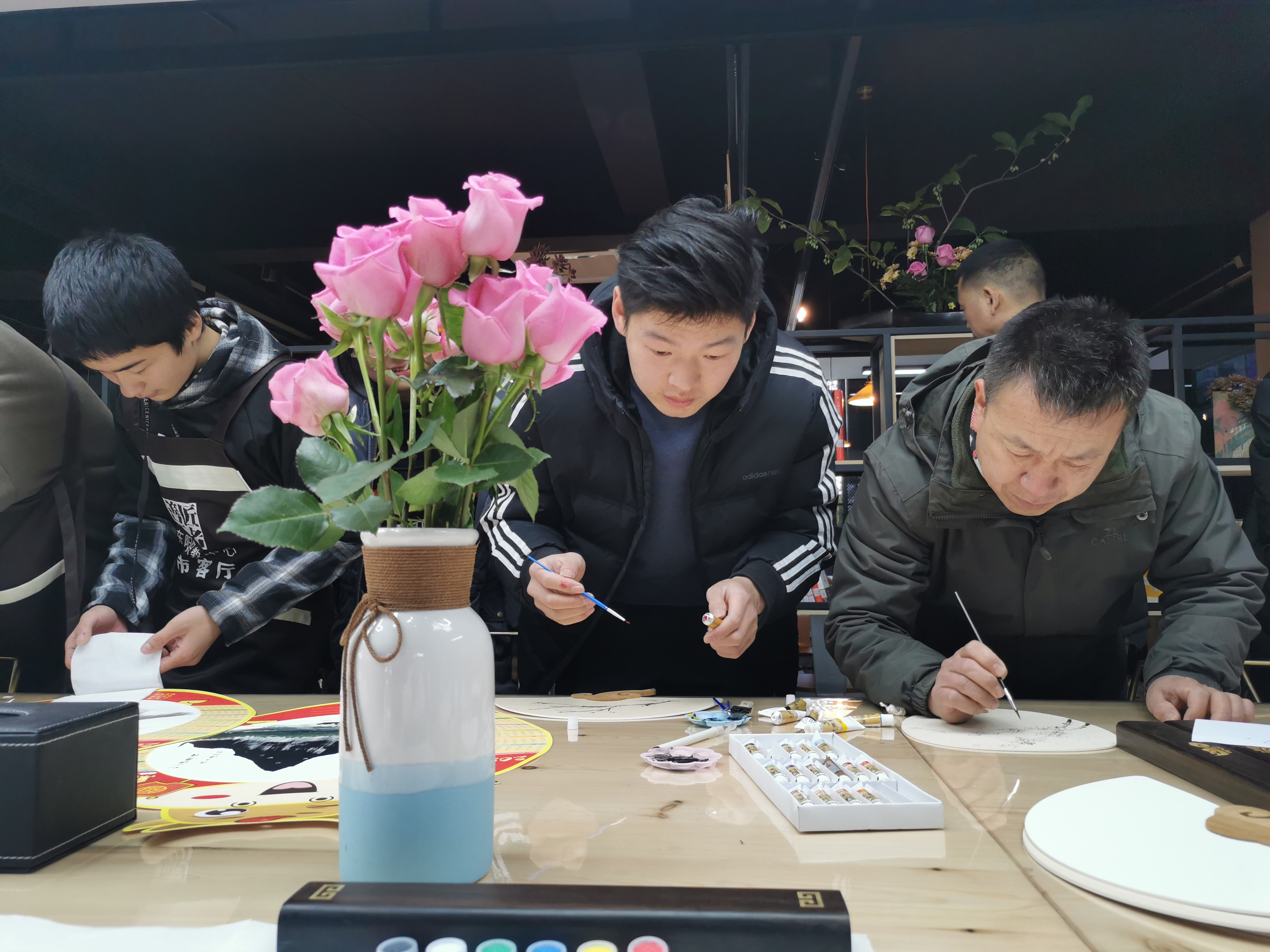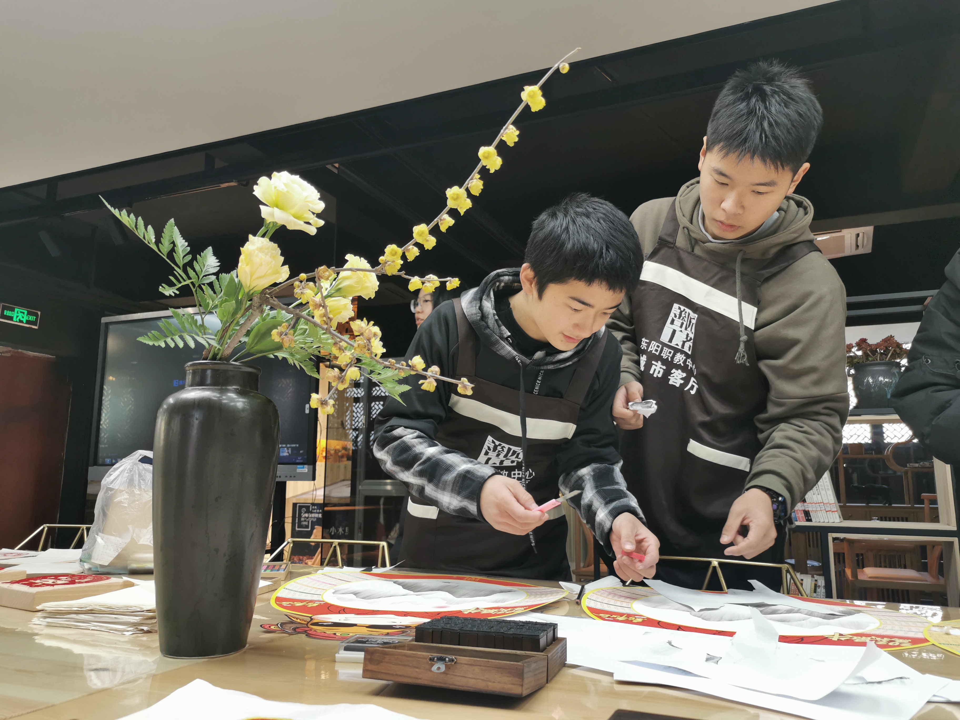 “城市客厅”既是展示职教精彩的窗口,也是校外实训的基地。单俊杰、任佩航是东阳职教中心2020级装饰班的学生,具备绘画功底。在手作体验区,他们当起“小老师”,指导市民体验彩绘年画。