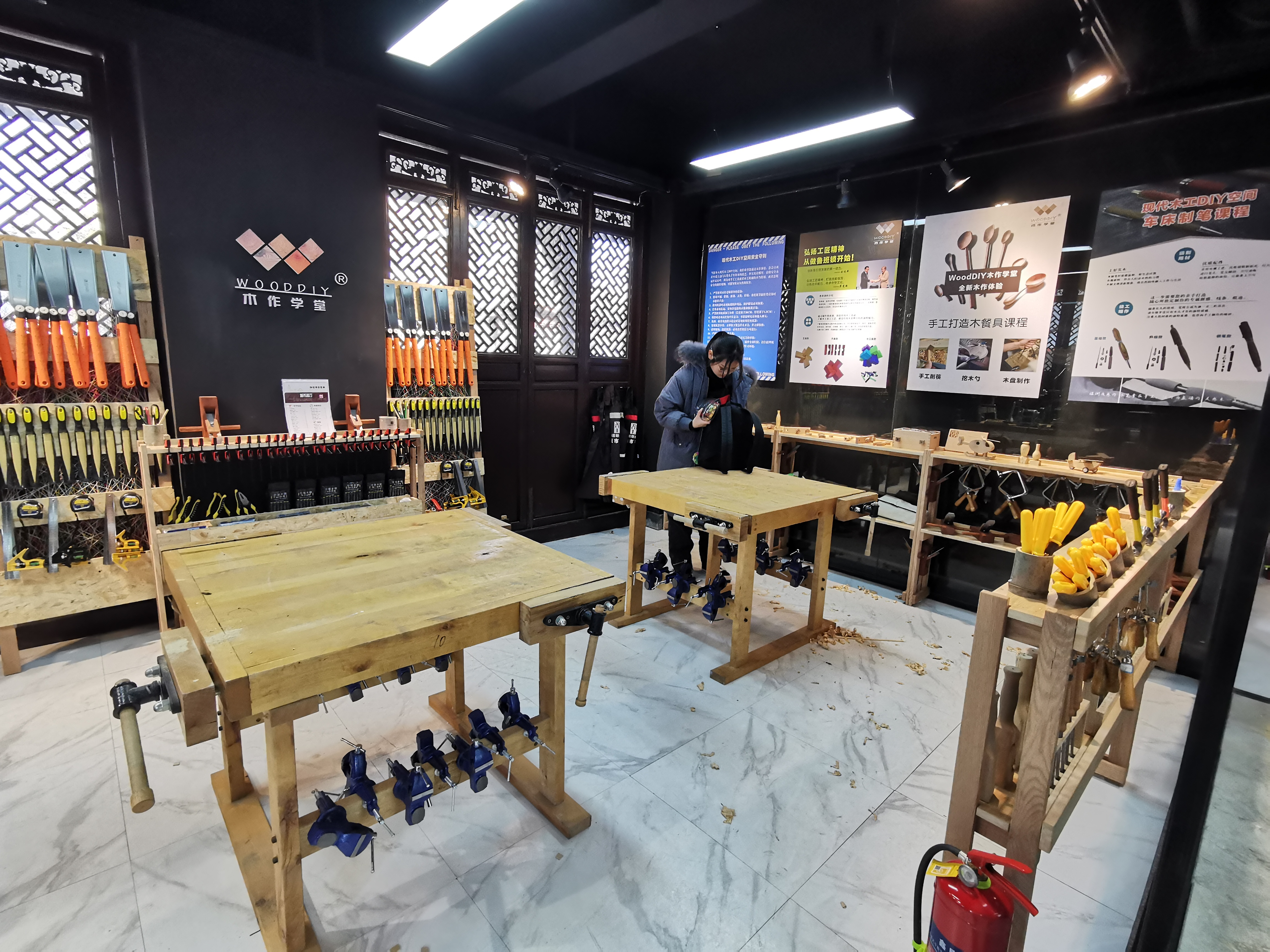 木作学堂里可制作木制小鸟、勺子、筷子、八音盒等10余种物件。