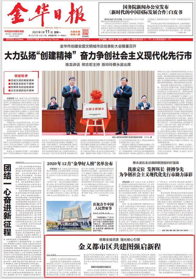党委政府的精心谋篇布局,为金义都市区共建航程指明方向。