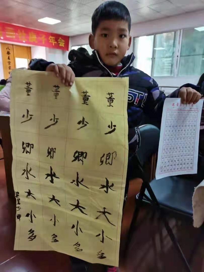 刘素娟根据学生所在年级的高低,将他们分成3个班,每个周日授课半天,暑期则连续上一个月。“三年级以下学生需要从最简单的笔画、生字开始练起,高年级学生则根据他们的兴趣爱好加上绘画、毛笔字等课程。“讲授活动中,面对不同层次的学生,刘素娟从练习书法可以修身养性的角度提高学生学习书法的兴趣,并教学生们从执笔、添墨、下笔等基本功练起。她在给留守儿童讲解书法基础知识时,通过分析一幅书法作品的运笔方式,一个个手把手教导孩子们如何握笔、如何保持正确的坐姿和用笔力度等。授课之余,她还帮助辅导孩子们做作业。